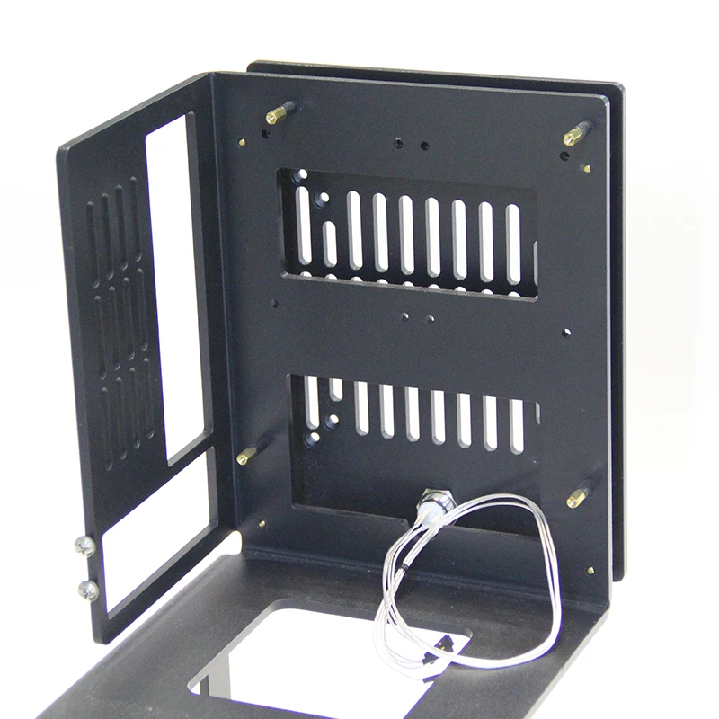 La placa base mini ITX vertical abierta de aluminio con chasis refrigerado por agua se puede equipar con fuente de alimentación SFX ATX Material: aleación de aluminio de aviación Características: 1. Carcasa abierta hecha de aleación de aluminio, que es buena para la disipación del calor y duradera 2. Se pueden instalar accesorios de efecto de luz para ver la belleza de la luz y romper las restricciones visuales. 3. Baja la fuente de alimentación para bajar el centro de gravedad de la carcasa y evitar que la carcasa se vuelque. 4. Formado de prensa de una sola vez sin soldadura, biselado, molienda fina, recubrimiento negro mate; 5. Admite SSD instalaciones de 2, admite potencia ATX y potencia SFX, sin límite en la longitud de la tarjeta gráfica 6. Admite Instalación de fila refrigerada por agua integrada 120/140/240/280 7. Accesorios íntimos, simples y fáciles de instalar Paquete: chasis abierto x1, apertura x1, alfombrilla antideslizante X4, juego de tornillos x1, brida, cable SATA X2 El cable del interruptor se ha cambiado a cable plateado del interruptor de acero inoxidable