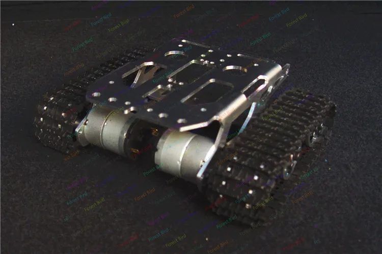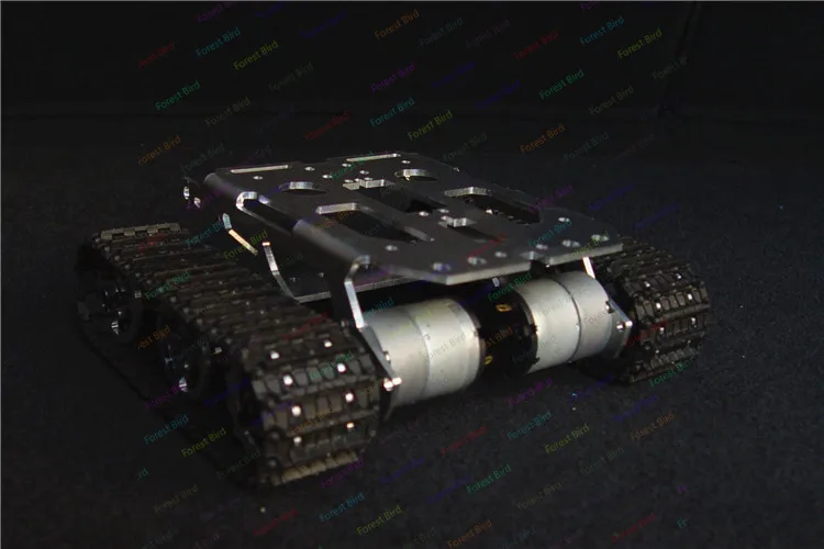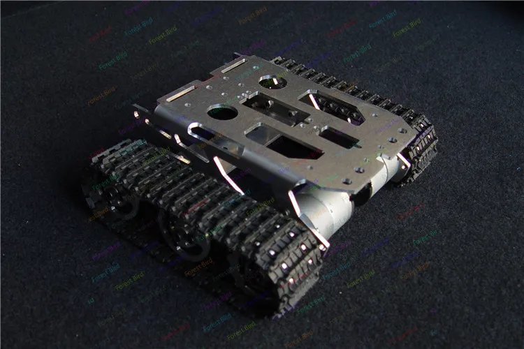 El chasis del tanque es exquisito y de apariencia hermosa.El soporte del chasis y la rueda están hechos completamente de metal, que es firme y estable.La tracción eléctrica de doble motor es fuerte y potente, funciona rápida y sin problemas, con alta estabilidad.Puede avanzar y retroceder, girar a la izquierda y a la derecha, girar en su lugar y girar de manera flexible.Hay un puerto de instalación del mecanismo de dirección reservado en el medio del fuselaje para brindar comodidad a los clientes al instalar el mecanismo de dirección.Al mismo tiempo, la plataforma del chasis es amplia para proporcionar suficiente espacio para que los clientes instalen el circuito de control.Además, hay un soporte debajo de la plataforma frontal del chasis, que los clientes pueden utilizar para instalar baterías.