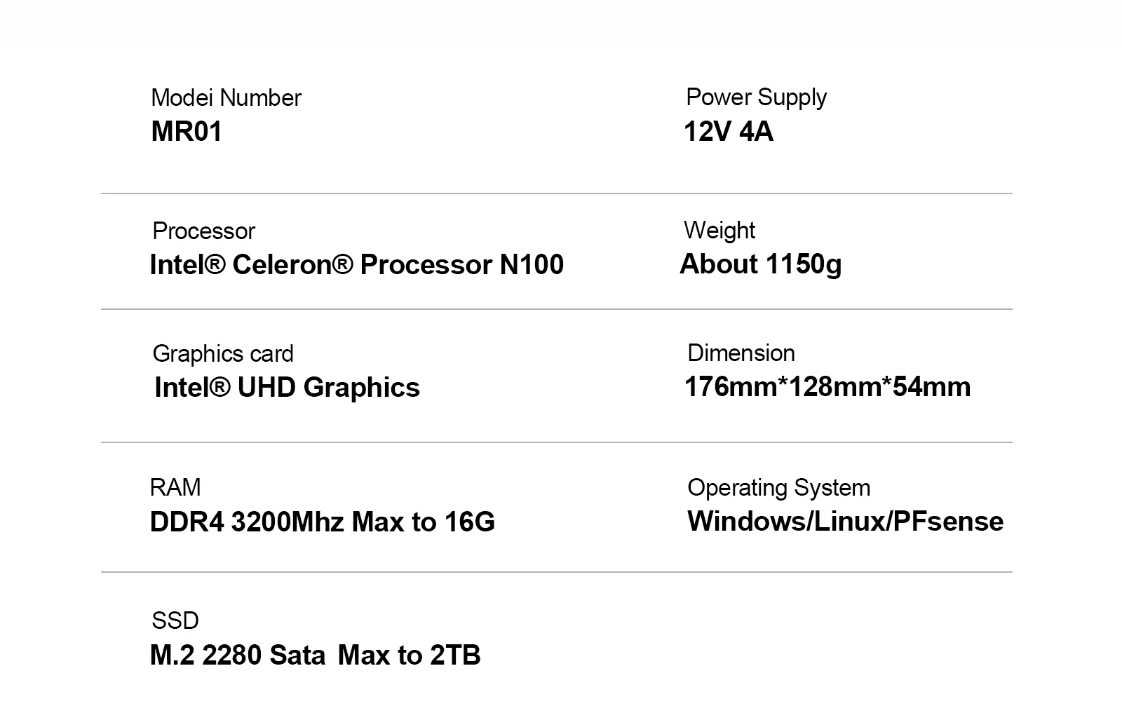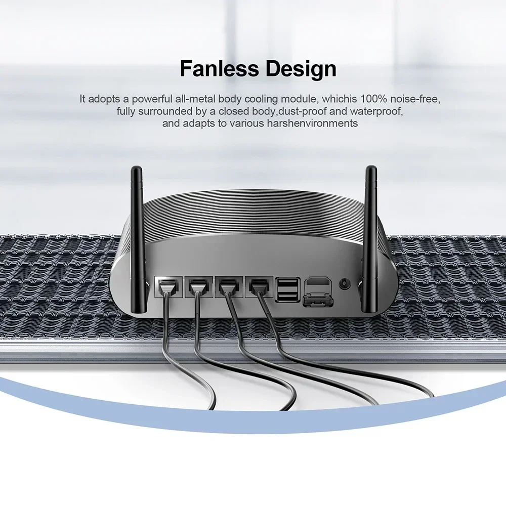 Comprar Chatreey Mini PC Industrial sin ventilador intel N100 Win 11 pro ordenador de escritorio MR02 con 4 * Intel LAN i225, 2 COM, 3 USB para Linux