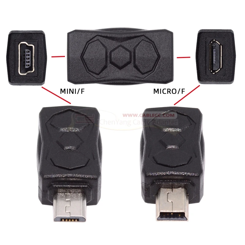 El paquete incluye 3 adaptadores de La piezas: mini macho a micro hembra, mini hembra a micro macho, mini hembra a micro hembra.