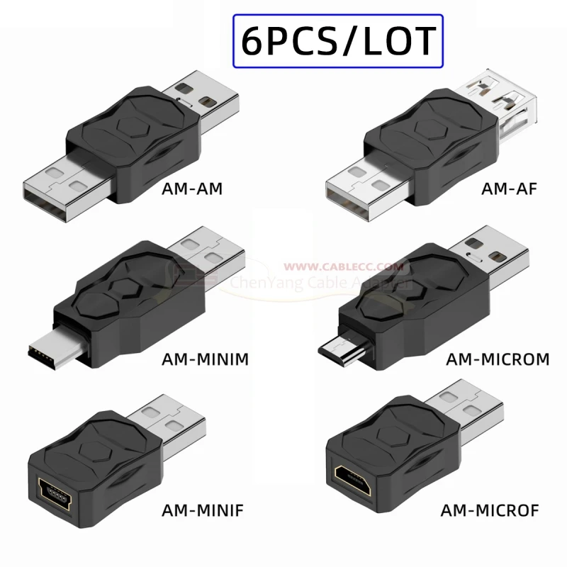 6 unids/lote tipo A Micro USB 2,0 Mini USB 5 pines macho a hembra adaptador de corriente de datos de extensión