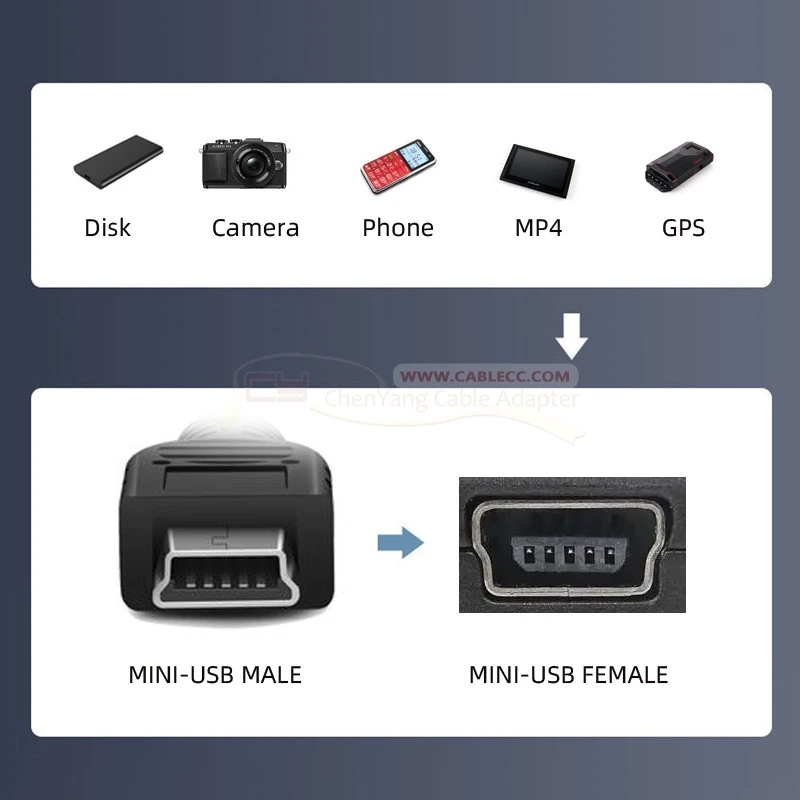 Comprar Chenyang-Adaptador de carga de transferencia de datos, 5 unidades por lote, USB 2,0, Micro USB, OTG, Mini USB, 5 pines, tipo A, macho A hembra