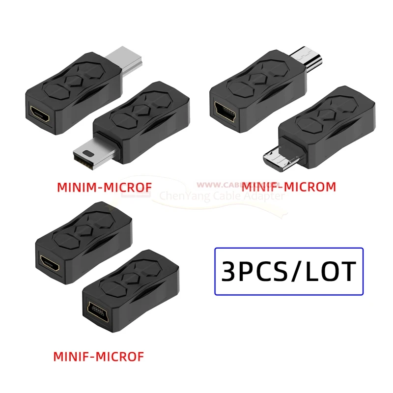 3 unids/lote Micro USB 2,0 a Mini USB 5 pines macho a hembra adaptador de corriente de datos de extensión