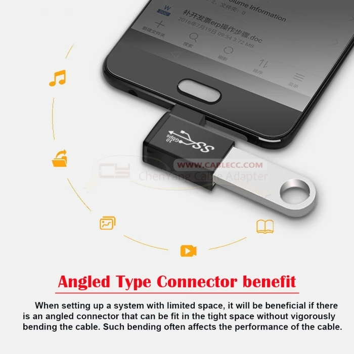 Comprar Chenyang-adaptador OTG tipo C a USB 3,0, adaptador de 90 grados, ángulo recto, hembra, para ordenador portátil y teléfono móvil