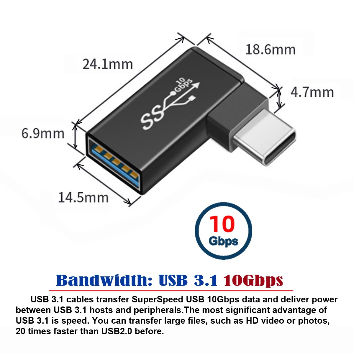 Adaptador OTG hembra de tipo C a USB 3,0, ángulo recto de 90 grados para Mac, portátil, teléfono móvil