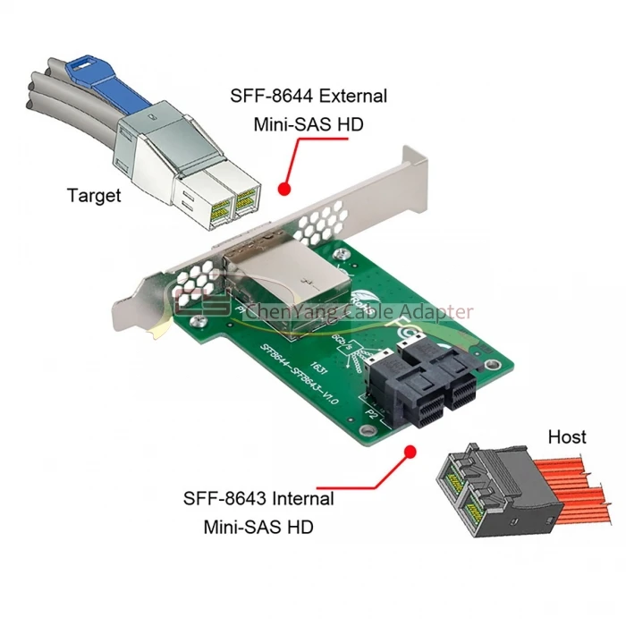 Puertos duales Mini SAS HD a SAS interno HD Adaptador hembra de PCBA con soporte de perfil bajo