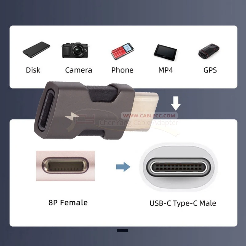Adaptador de datos de 480Mbps de alimentación macho a 8P hembra tipo C macho compatible con iPhone 15, Android y tableta