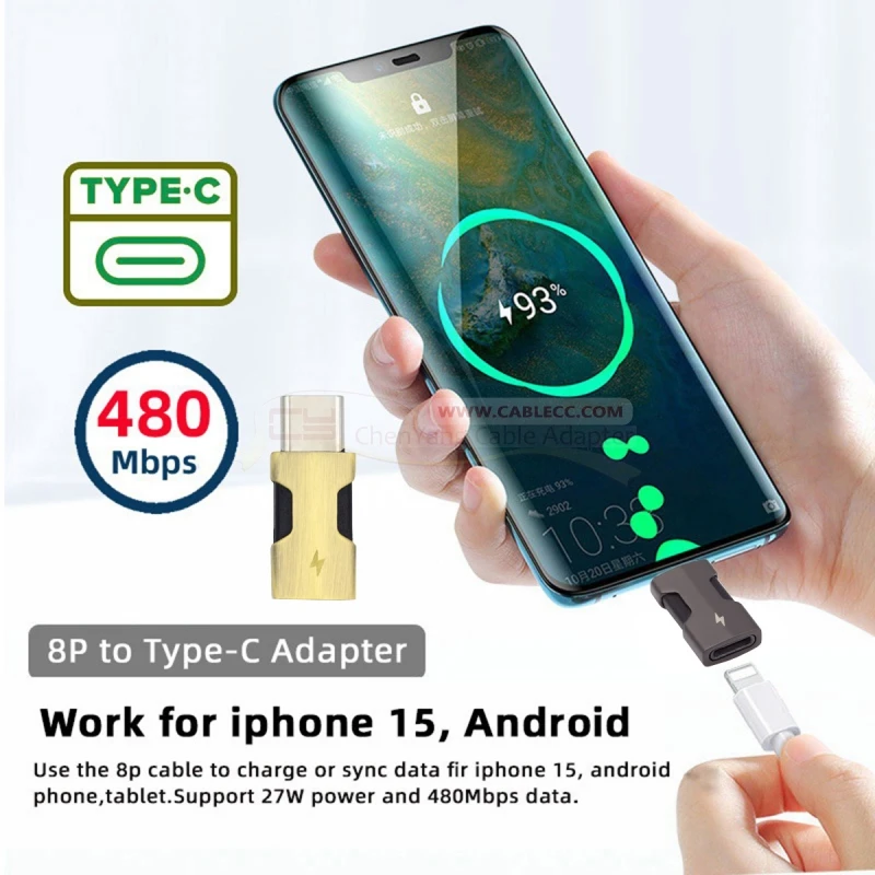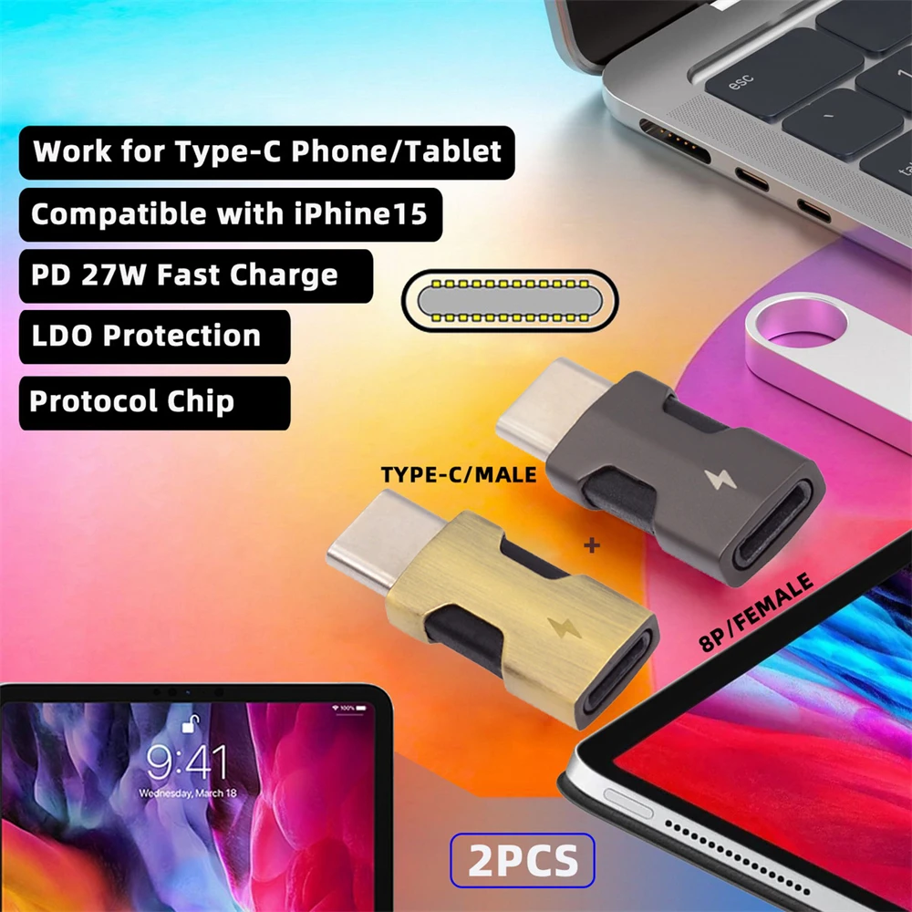 Chenyang 2 unids/set tipo C macho a 8P hembra 27W potencia USB 3,1 adaptador USB C convertidor Compatible con iPhone 15 y Android