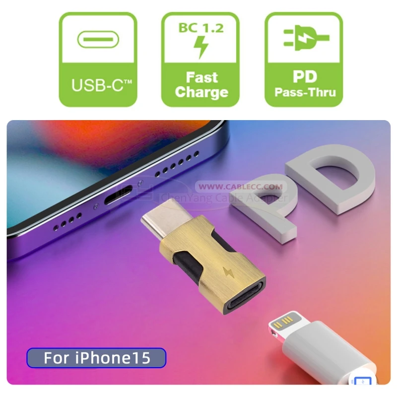 Admite alimentación externa 8P a usb-c Compatible con iPhone 15, Android y tableta.