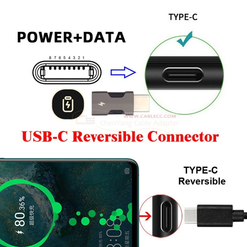 El conector tipo C es compatible con el nuevo diseño iPhone 15, diseño reversible para conector tipo C.