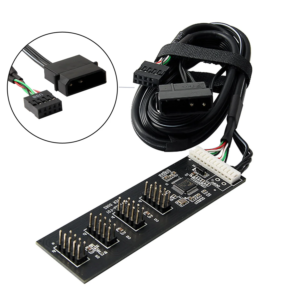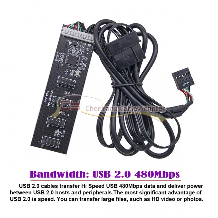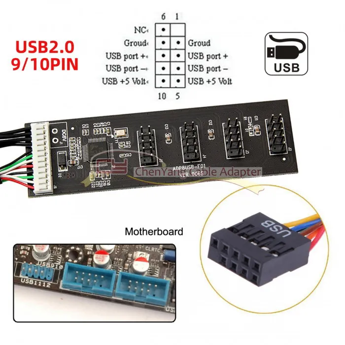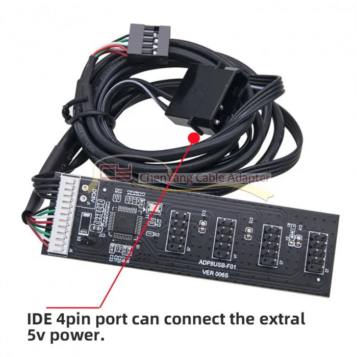 USB 2,0 9pin 10pin Header 1 a 4 Hembra Splitter Cable de extensión HUB con IDE 5V Conector de alimentación Adaptador Puerto Multilier
