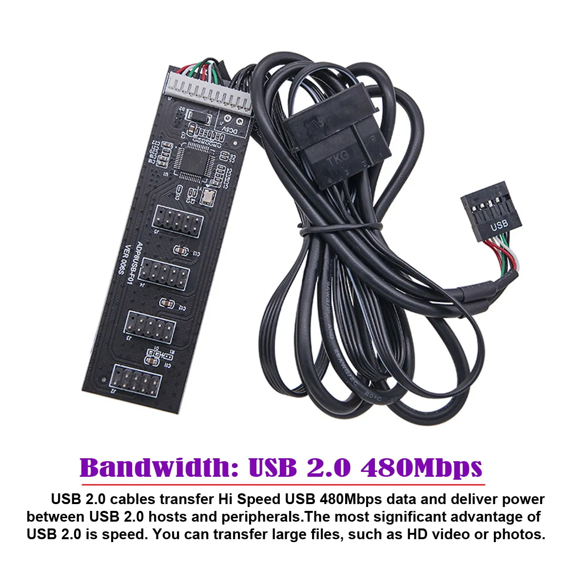 El cable se puede utilizar para conectar dispositivos internos USB de 9 pines, por ejemplo, 4 tarjetas con conector de 9 pines a un controlador con conector USB 2,0-conector de 9 pines.