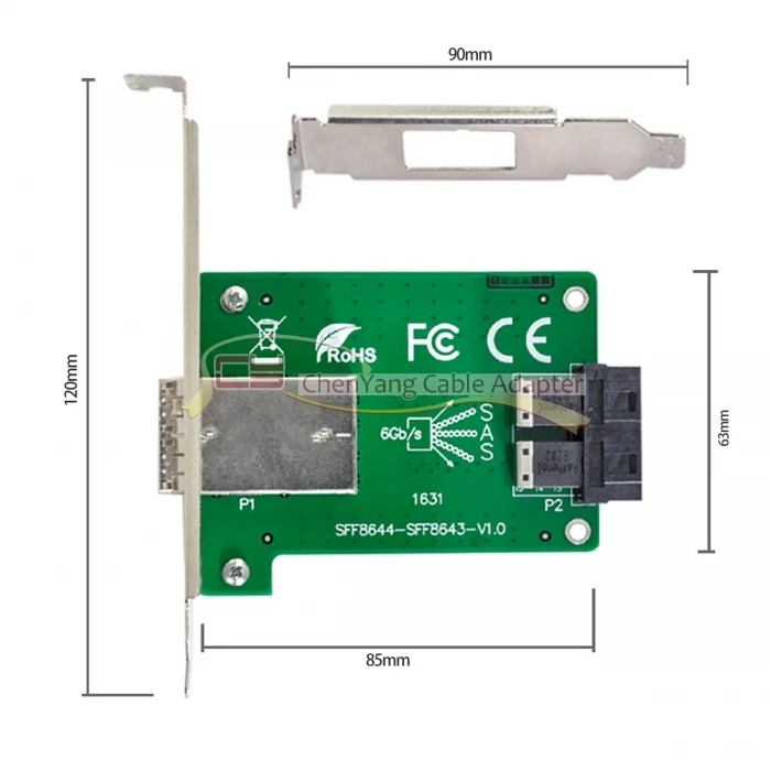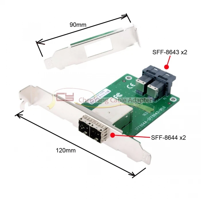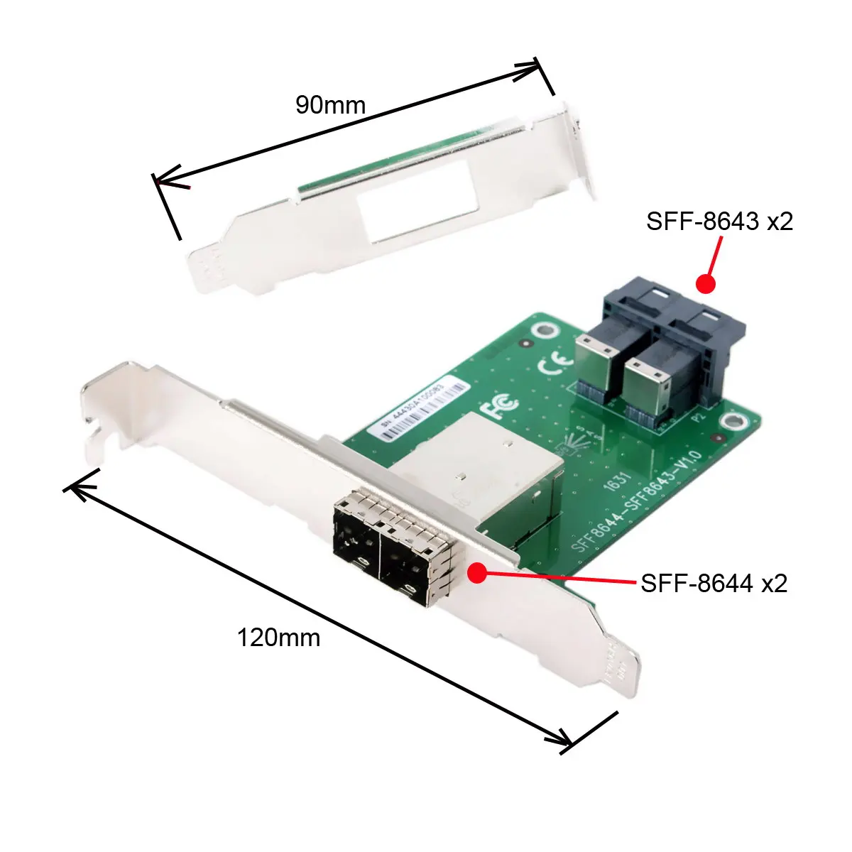 Puertos duales Mini SAS HD a SAS interno HD Adaptador hembra de PCBA con soporte de perfil bajo