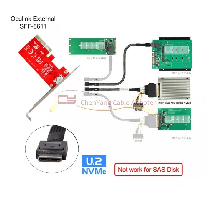 Comprar Chenyang-SFF-8612 externo PCI-E 3,0 Express 4,0x4 a Oculink, adaptador de SFF-8611, PCIe SSD