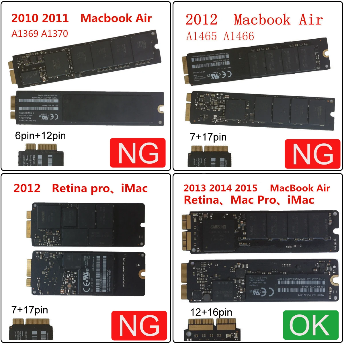 2015 MacBook Air A1465 A1466 (MJVM2 MJVP2 MJVE2 MJVG2) y Mac Pro ME253 MD878 SSD.