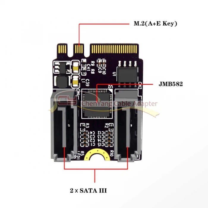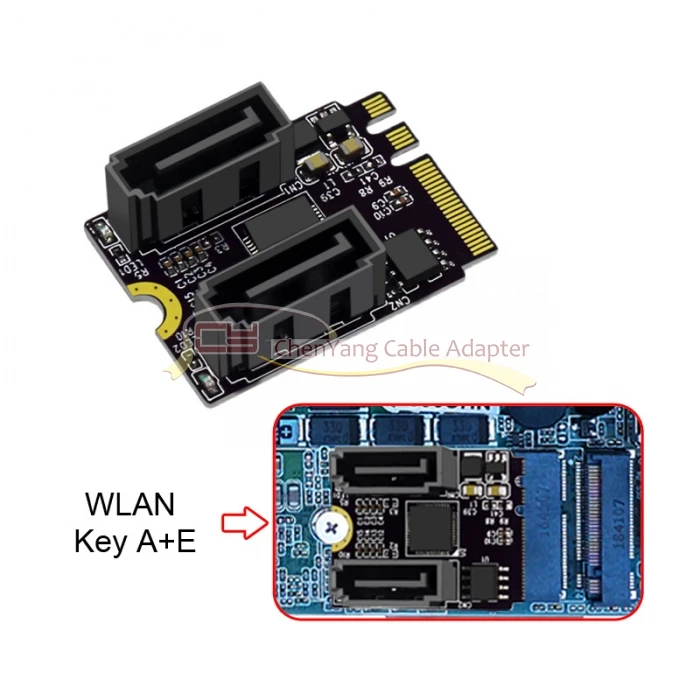 Comprar Chenyang-Tarjeta convertidora NGFF Key A + E PCI Express A SATA 3,0, adaptador de puertos duales, JMB582