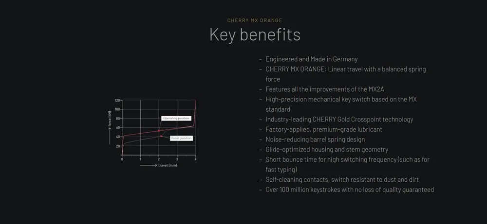 Comprar Cherry-interruptor MX2a para teclado mecánico, color púrpura, color naranja, lineal, táctil, V2, 35g, 55g, Lubed de fábrica, 5 pines