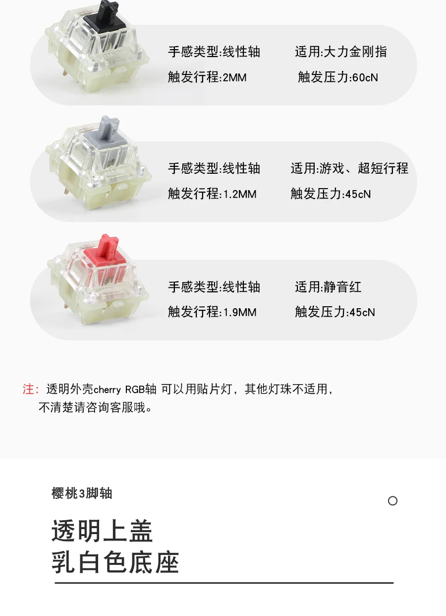 Silver Cherry: interruptor lineal, 40% más rápido que el rojo cereza, ligeramente más pesado que el rojo, bueno para los jugadores