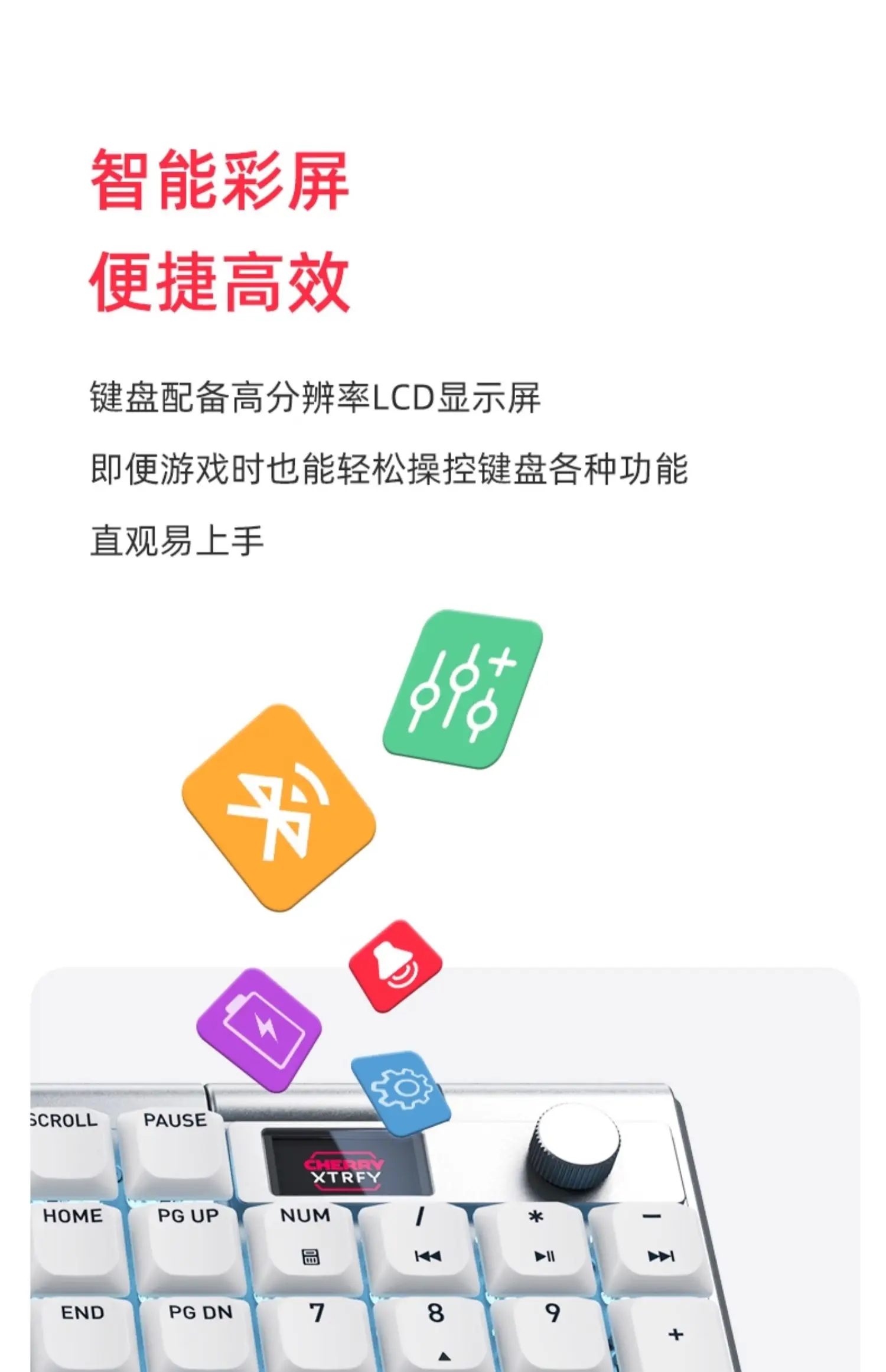 5.Pantalla a color inteligente, conveniente y eficiente.El teclado está equipado con una pantalla LCD de alta resolución, lo que facilita el control de varias funciones del teclado incluso durante el juego.Es intuitivo y fácil de usar.