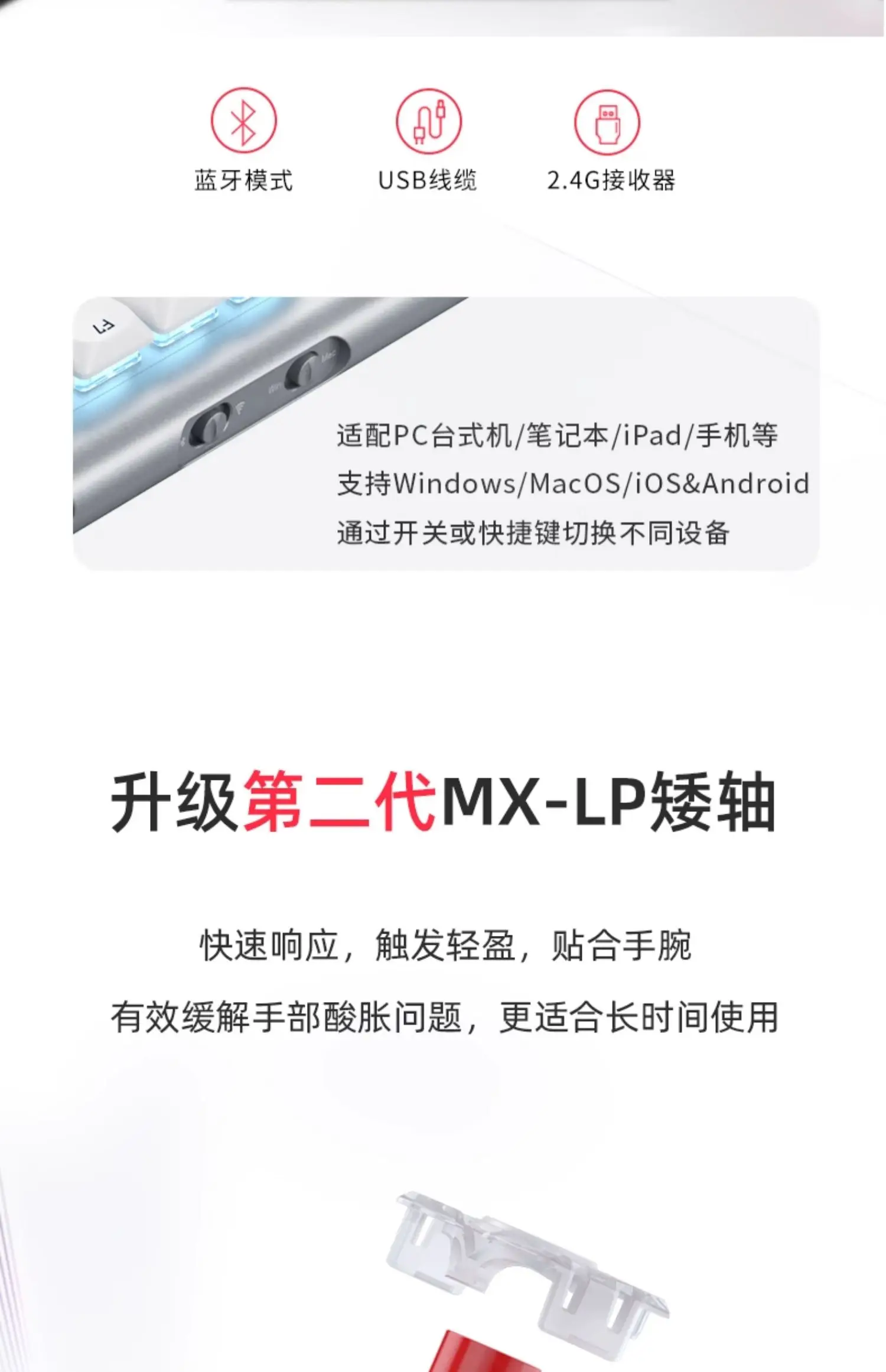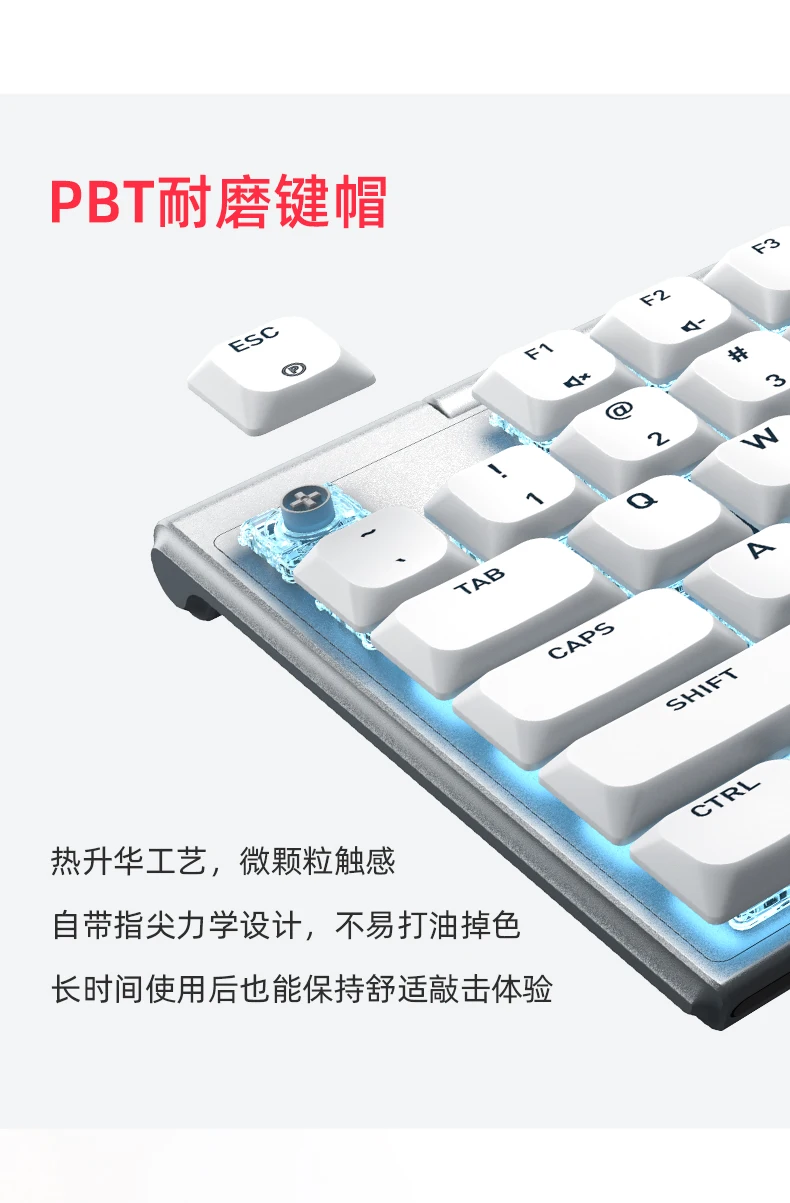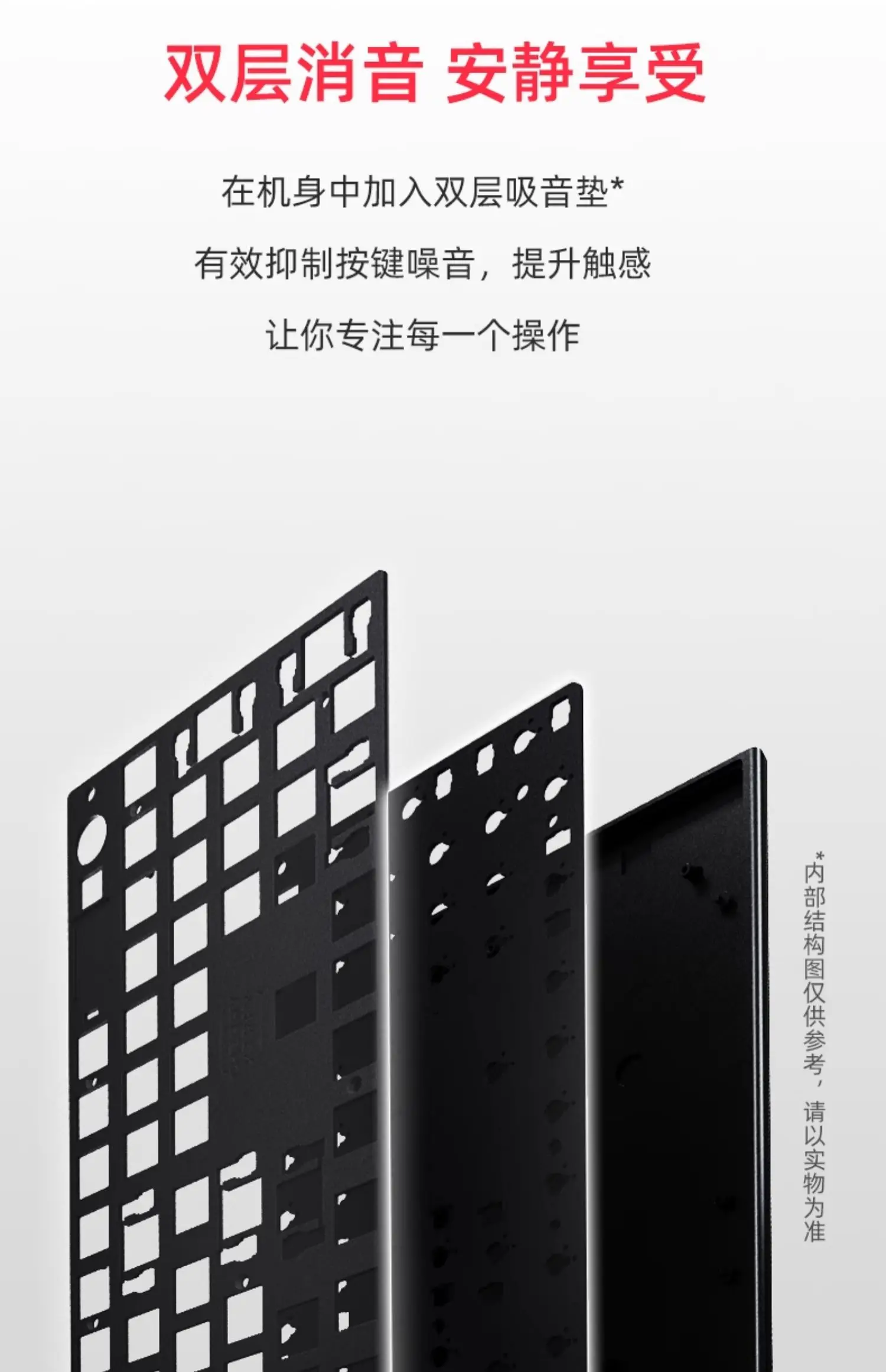 4. Reducción de ruido de doble capa, disfrute silencioso.Se agregan al cuerpo almohadillas absorbentes de sonido de doble capa para suprimir eficazmente el ruido de los botones y mejorar el tacto, lo que le permite concentrarse en cada operación.