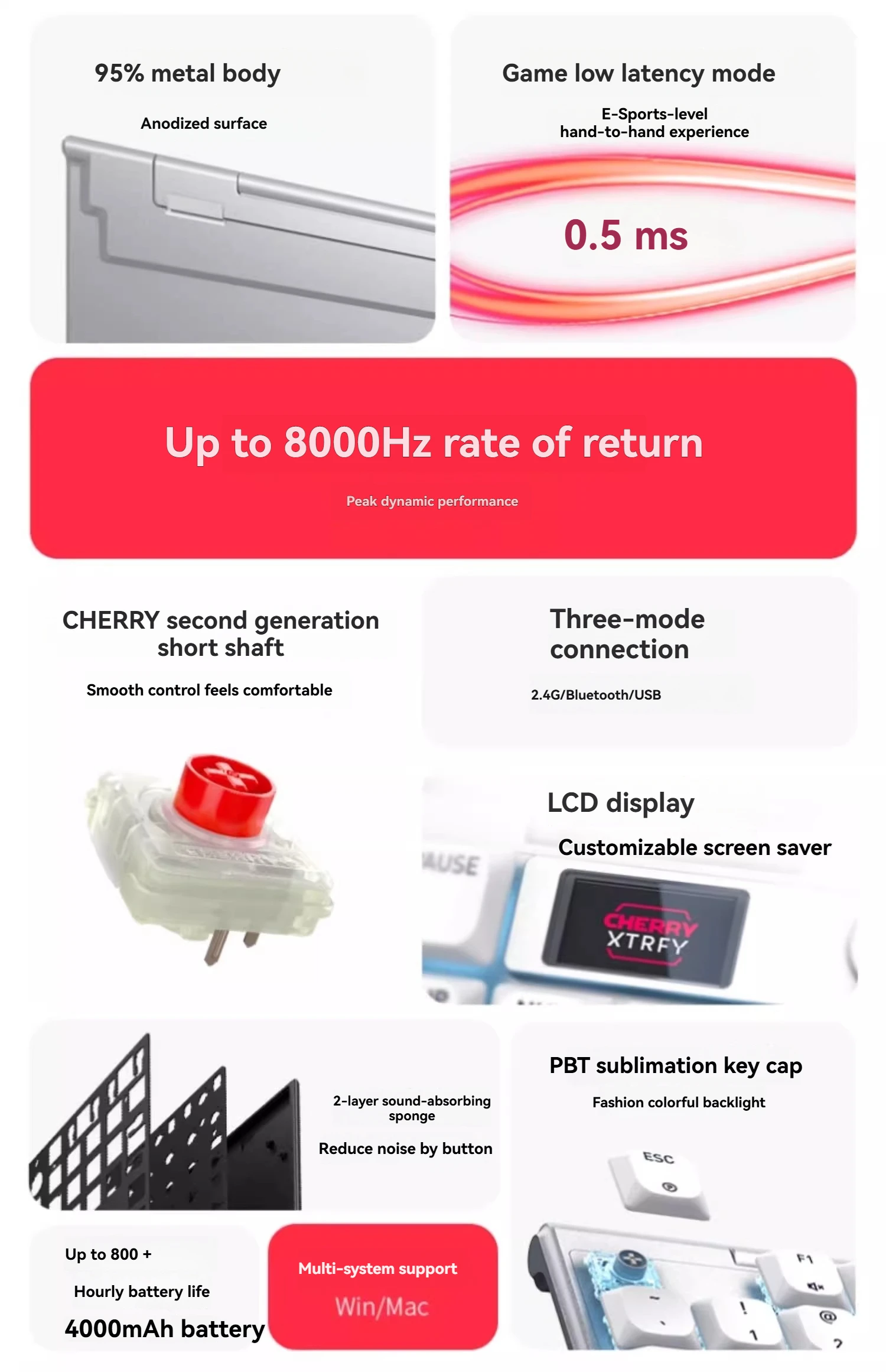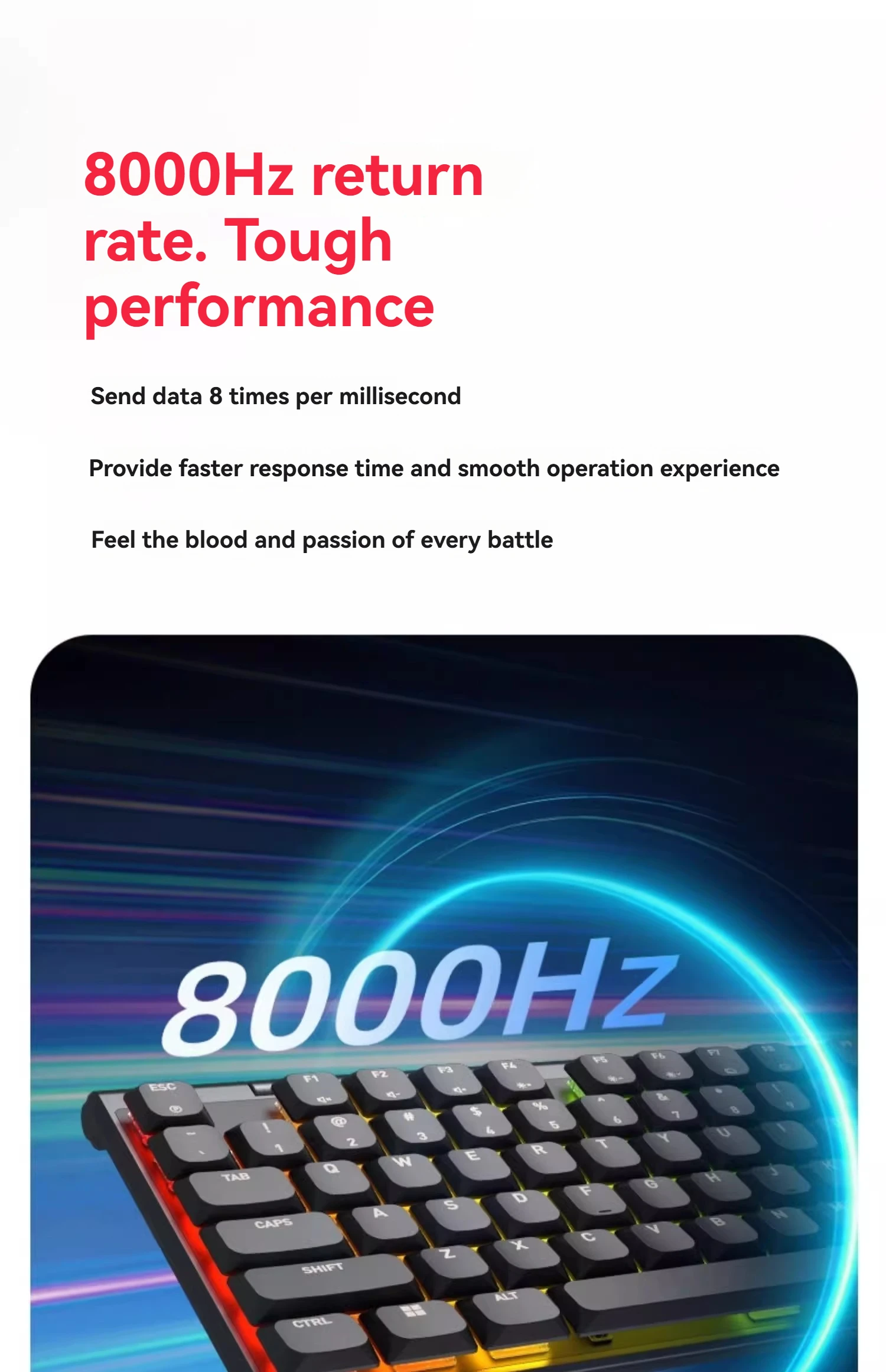 Velocidad de retorno de 3,8000 Hz, rendimiento potente, envío de 8 datos por milisegundo, proporcionando un tiempo de respuesta más rápido, brindándole una experiencia operativa fluida y sintiendo la pasión y el entusiasmo de cada batalla.