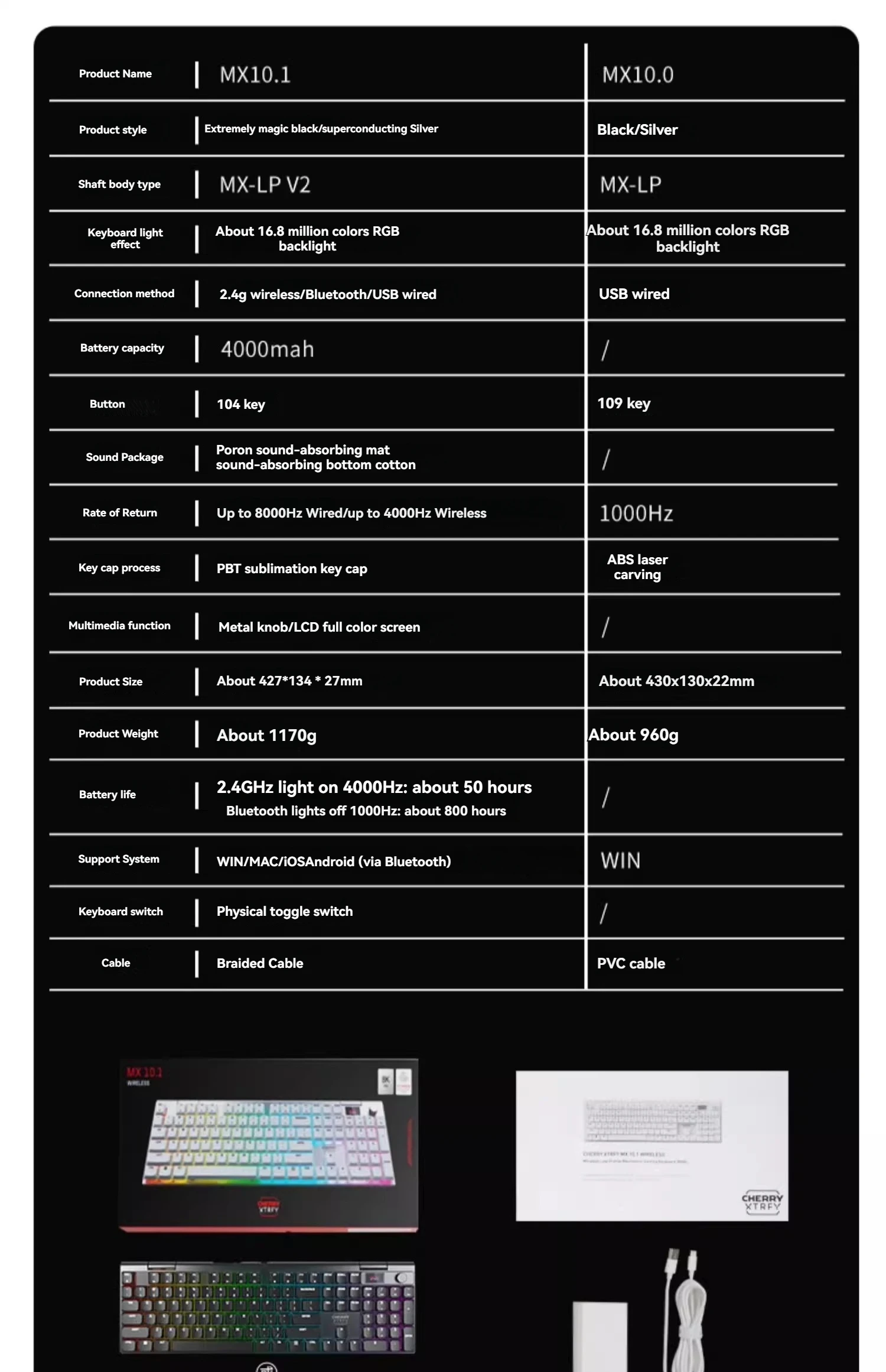 CHERRY MX10.1 Teclado mecánico de perfil bajo Tri-modo inalámbrico RGB interruptor ultrafino Panel de Metal teclado de oficina para juegos regalo