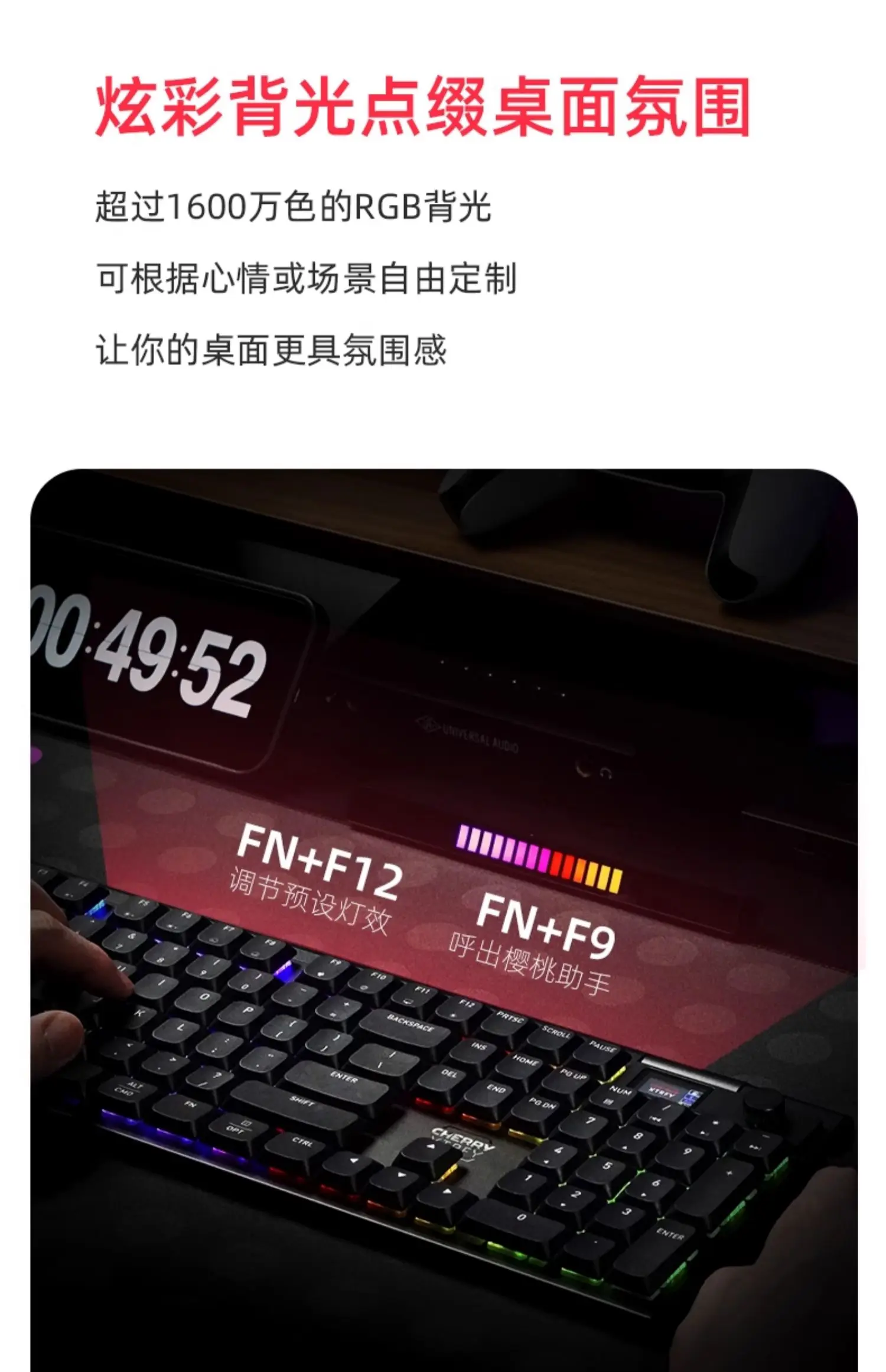 6.La retroiluminación colorida embellece la atmósfera del escritorio, con más de 16 millones de colores de retroiluminación RGB que se pueden personalizar según el estado de ánimo o la escena, haciendo que su escritorio sea más atmosférico.