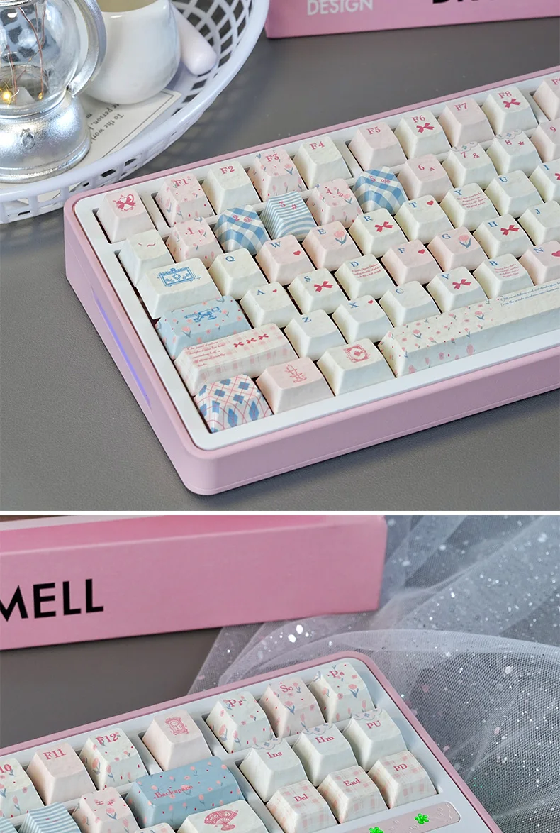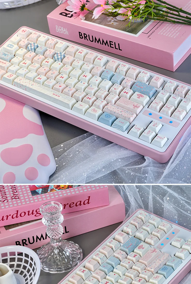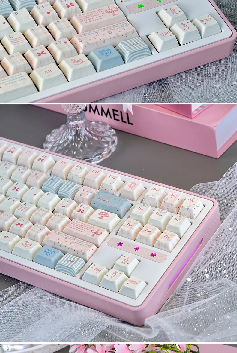Teclas de perfil Cherry, decoración de teclas de Anime Sweet Rococo para teclado Compatiblemaoha: 61/68/75/82/84 modelos, teclas