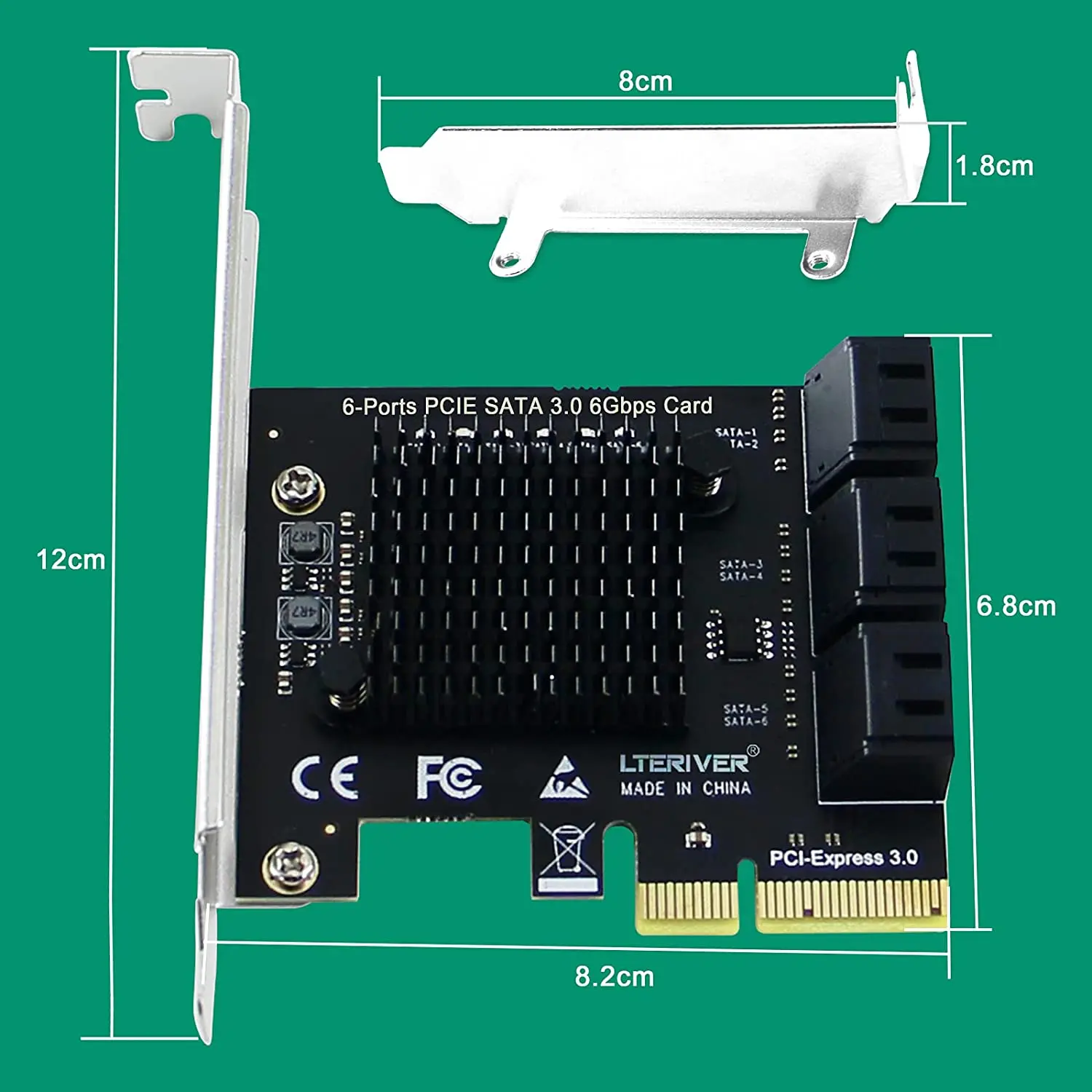 Comprar Chia Mining-tarjeta de expansión SATA 3 PCI Express, 6 puertos, PCI-E, controlador PCIE 1X a SATA3, adaptador de 6Gb, tarjetas adicionales para HDD SSD
