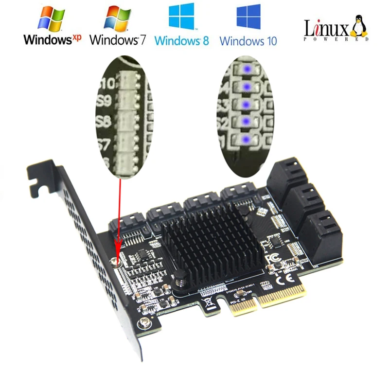 Comprar Chia Mining-Tarjeta PCIe SATA 6/10, Puerto 6Gbps, SATA 3,0 PCIe, compatible con 10 dispositivos SATA 3,0, adaptador incorporado, convertidor para escritorio