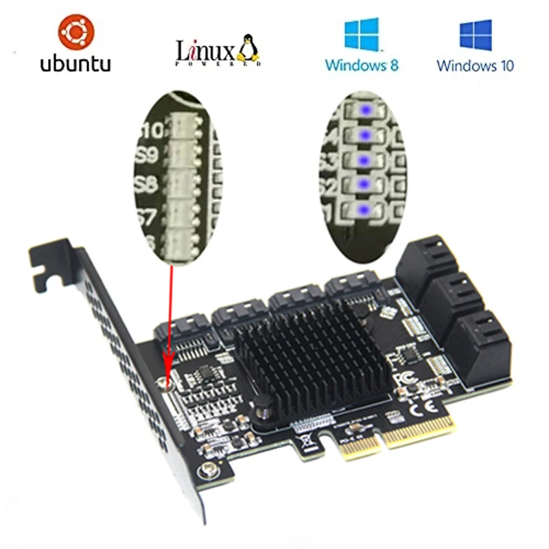 Comprar Chia Mining-Tarjeta PCIe SATA 6/10, Puerto 6Gbps, SATA 3,0 PCIe, compatible con 10 dispositivos SATA 3,0, adaptador incorporado, convertidor para escritorio