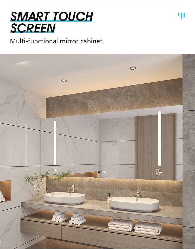 Comprar China Foshan Muebles de baño Gabinetes de tocador de baño impermeable para hotel Gabinete de espejo LED montado en la pared
