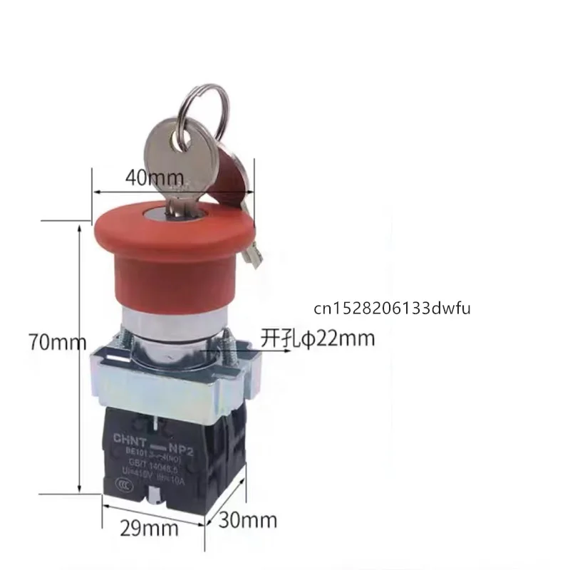 CHINT-Interruptor de botón de parada de emergencia con cabeza de seta, autobloqueo BS542, 40mm/60mm, con llave, conector Np2 1NC1NO/2NC/1NC