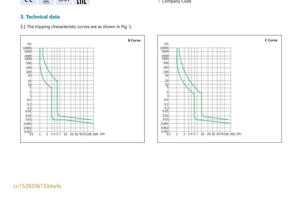 Curva C:protección para cargas convencionales y cables de distribución (protección de distribución) características de disparo del puerto: rango de disparo instantáneo (5-10) In.