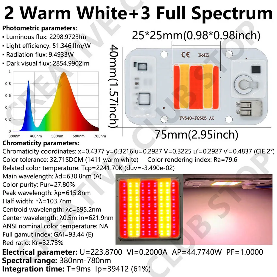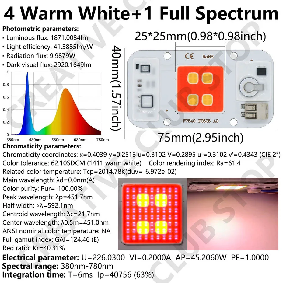 No es un espectro completo, no lo recomiendo. No hay ultravioleta ni infrarroja. Esta es una matriz blanca coloreada con pintura.