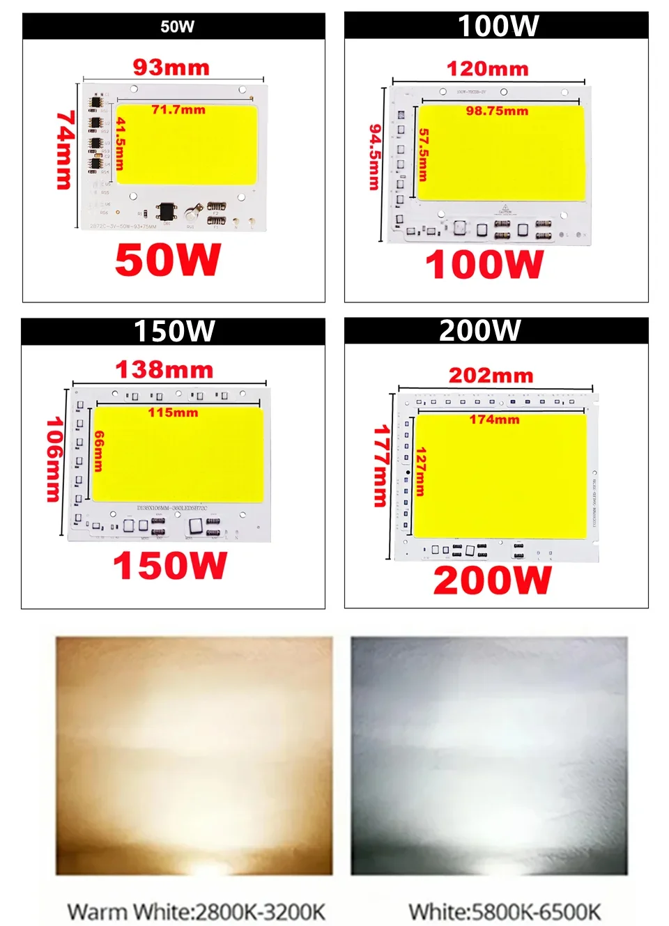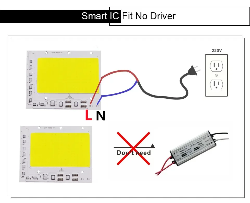 Chip LED COB 50W 100W 150W 200V-240V IC inteligente sin necesidad de controlador 150W 200W bombilla LED lámpara para luz de inundación foco iluminación Diy