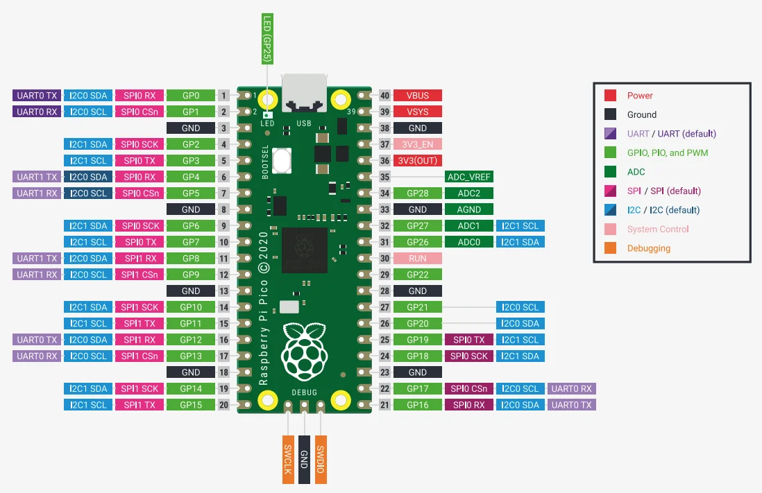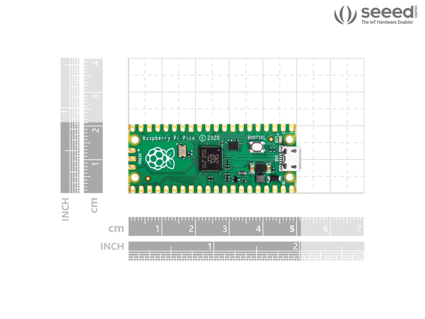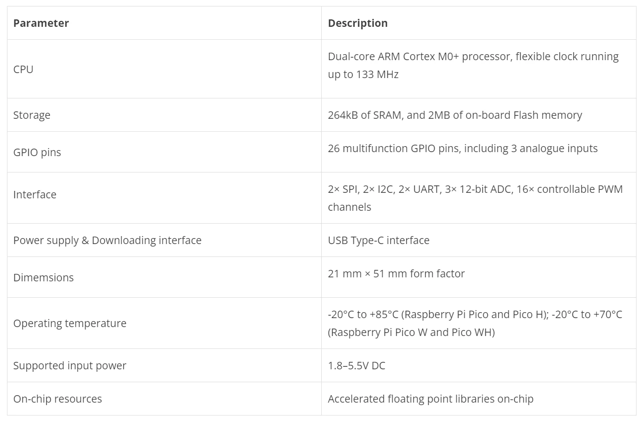 Raspberry Pi Pico está equipado con El potente chip RP2040, presenta un alto rendimiento y ricas interfaces/recursos integrados, pero ofrece un precio relativamente bajo. Está perfectamente diseñado para los principiantes en electrónica, bastante adecuado para aplicaciones de control de IoT.