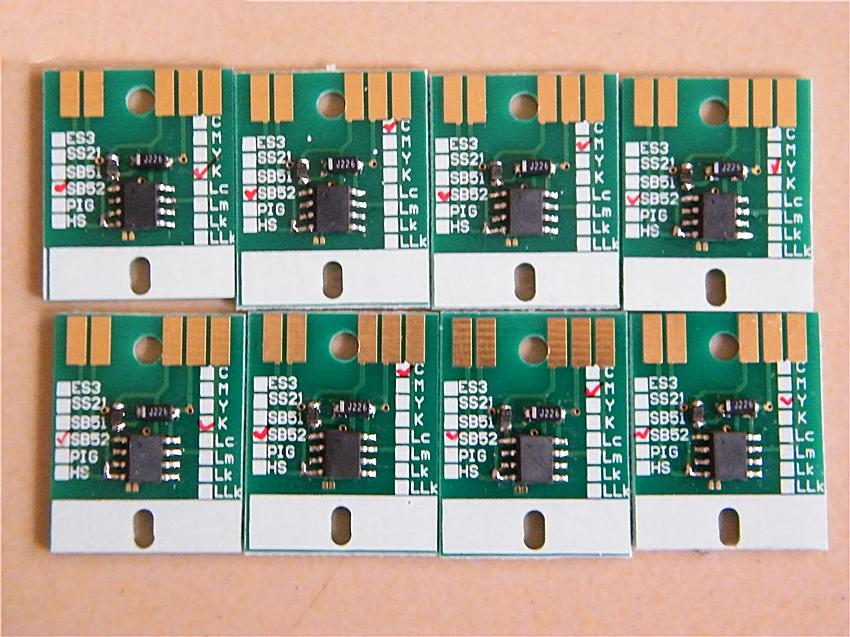 ¡Color -- C M Y K ( 4 colores) Cabezal de impresión adecuado -- para DX4 dx5 dx7 grado -- modelo de alta calidad -- SS21 chip Volumen de cartuchos de tinta: 440ML! P. D. También podemos proporcionar otros estilos de chips. (Por ejemplo. SB51 SB52 SB53 BS3 BS2 SS2 ES3 PIG HS) Si lo necesita, puede dejarnos un mensaje. Hay un chip permanente verde y rojo para la impresora Mimaki, la misma función, el mismo precio, lo enviaremos al azar en base a nuestro stock, ¡Gracias!