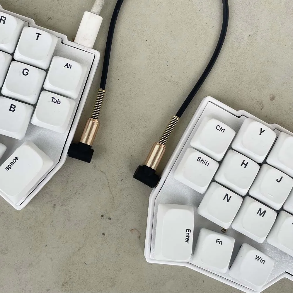 Pedí el modelo blanco con teclas etiquetadas. Fue entregado cuidadosamente empaquetado en una caja de cartón. En la caja también venían el cable TRRS y unos pies de goma para el teclado. La calidad de impresión de la funda para el teclado es realmente excelente, nada de qué quejarse. Lo que falta son los detalles técnicos. Por ejemplo. La iluminación RGB no cubre todas las teclas; he marcado las teclas que no tienen luz RGB. Debido a que el vendedor no proporciona un enlace a la fuente QMK de este teclado en particular, es difícil crear su propio firmware. Al menos VIAL está funcionando como se espera. Mientras tanto, descubrí que los microcontroladores son basados en RP2040 (cuáles no están claros en este momento; no abrí el teclado). Tenga en cuenta que, según lo indicado por el vendedor, el cable USB-C debe pedirse por separado. Además, el "removedor" de teclas y switches debe pedirse por separado.