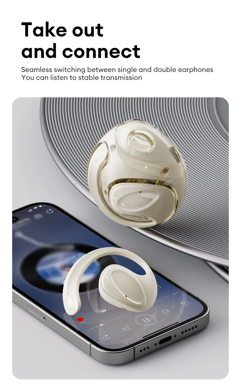 Diseño de gancho para la oreja con La espalda abierta: proporciona una acústica natural y un ajuste cómodo y seguro.