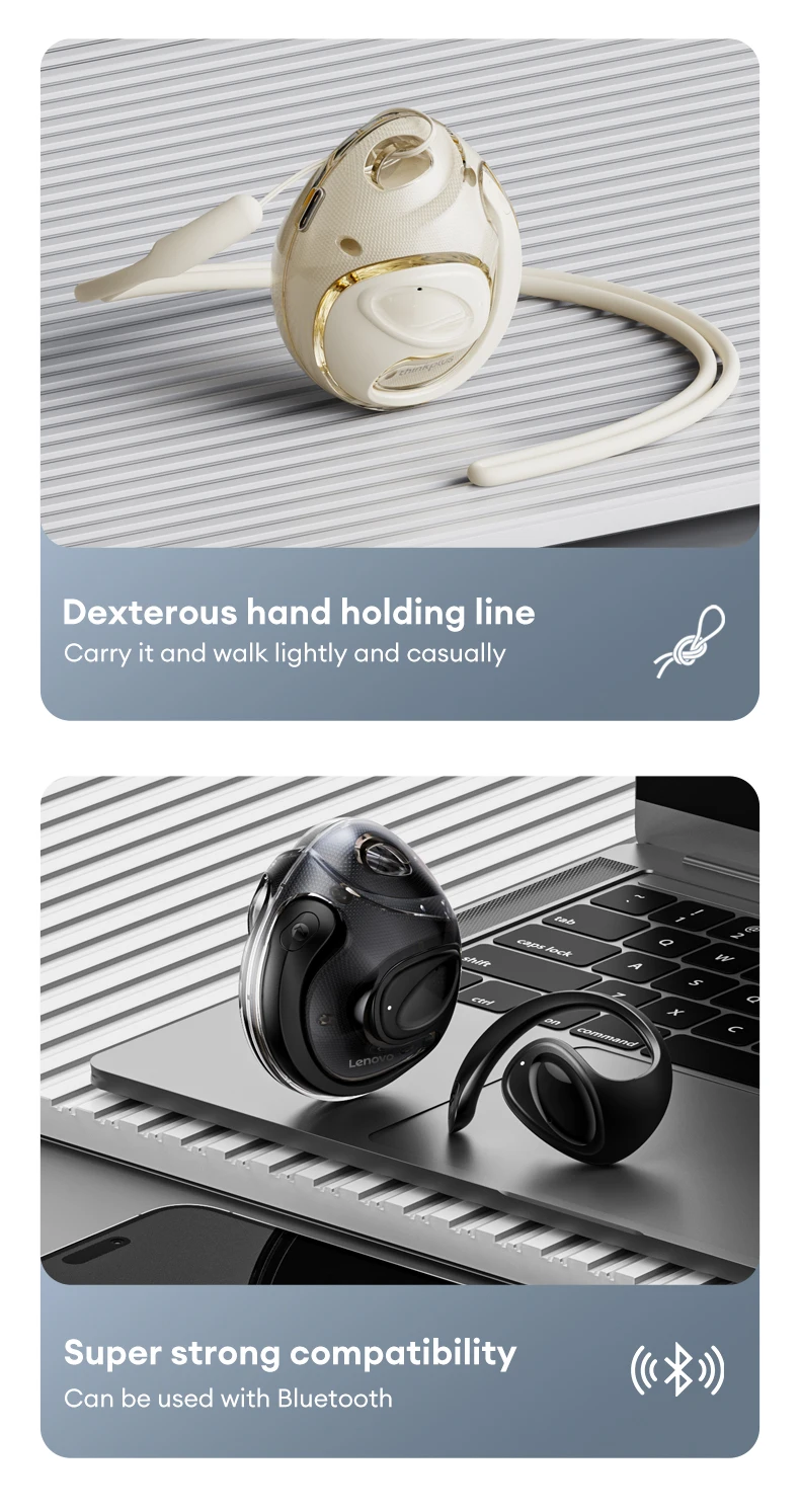 Inmersión de sonido panorámico: los auriculares Lenovo X15pro Ⅱ con gancho para la oreja ofrecen una impresionante experiencia de sonido similar a un concierto.