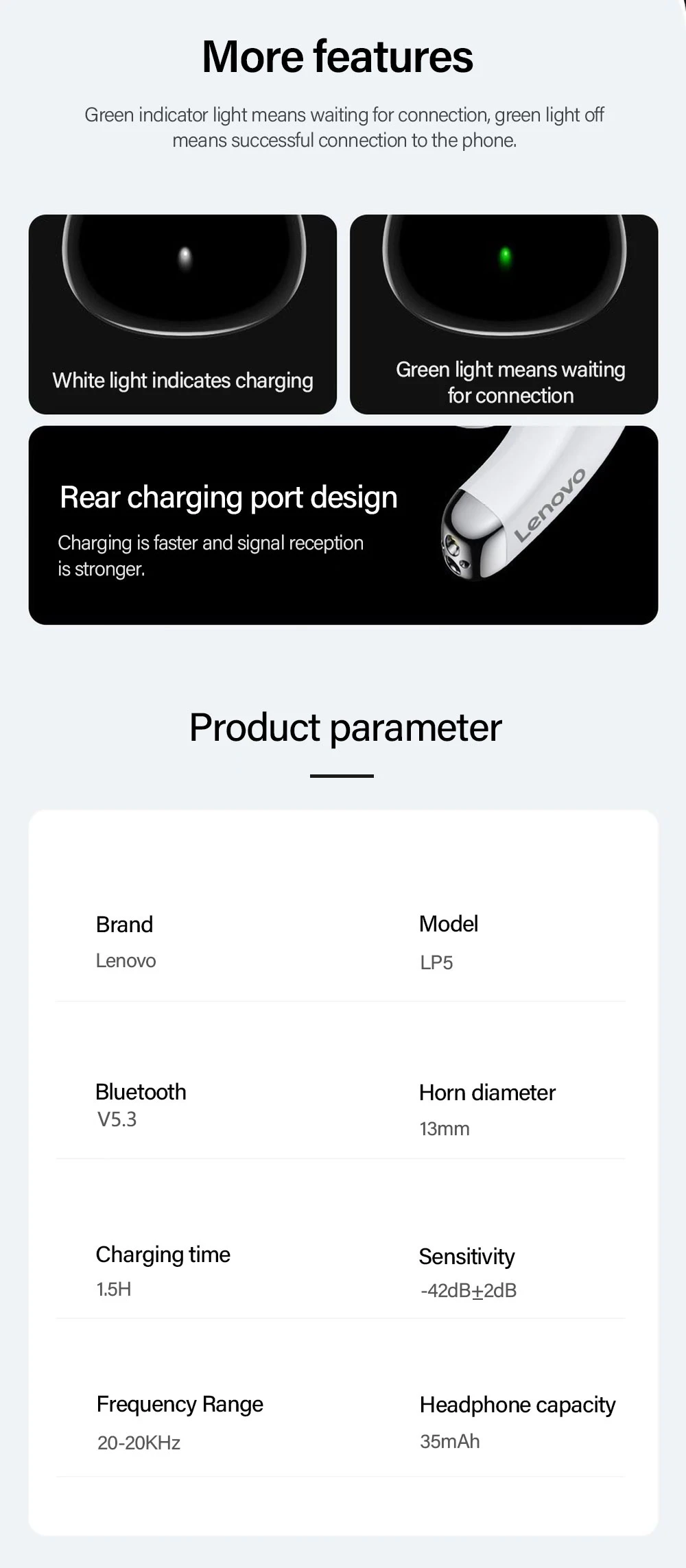 Nota: La fábrica ha actualizado la versión de chip Bluetooth de auriculares para 5,3, almacén de envío todavía hay algunas acciones de la versión Bluetooth de auriculares para 5,0, el almacén será enviado al azar, si te importa, por favor, haga su pedido con cuidado.