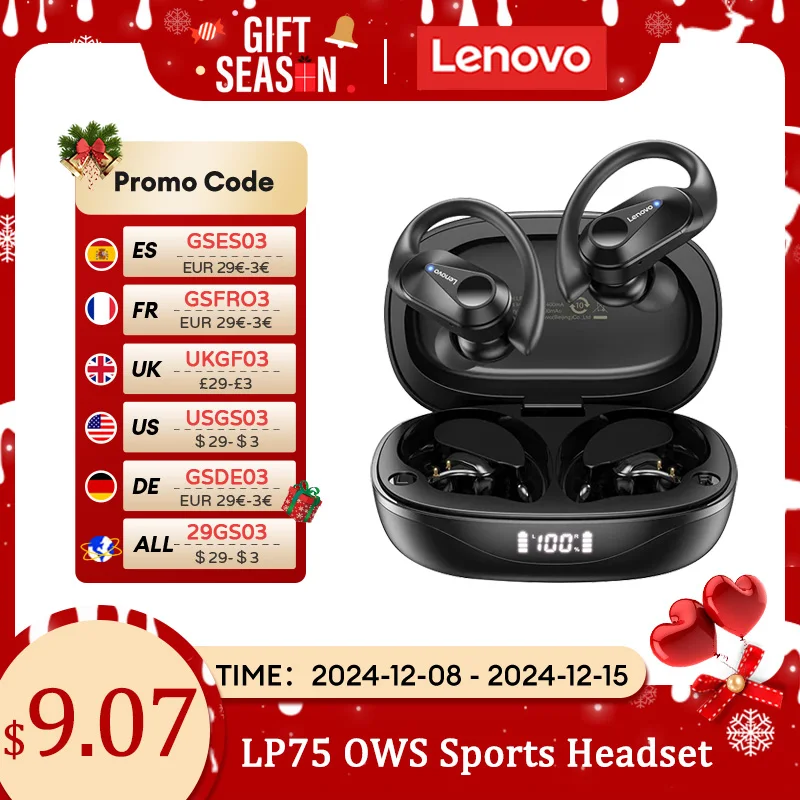 Comprar Choice Lenovo LP75 TWS auriculares inalámbricos Bluetooth V5.3 auriculares estéreo HiFi con reducción de ruido auriculares deportivos impermeables