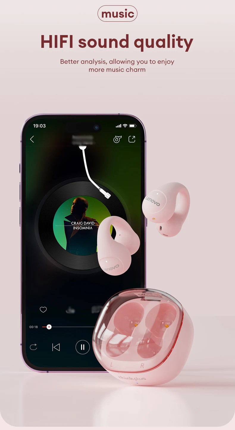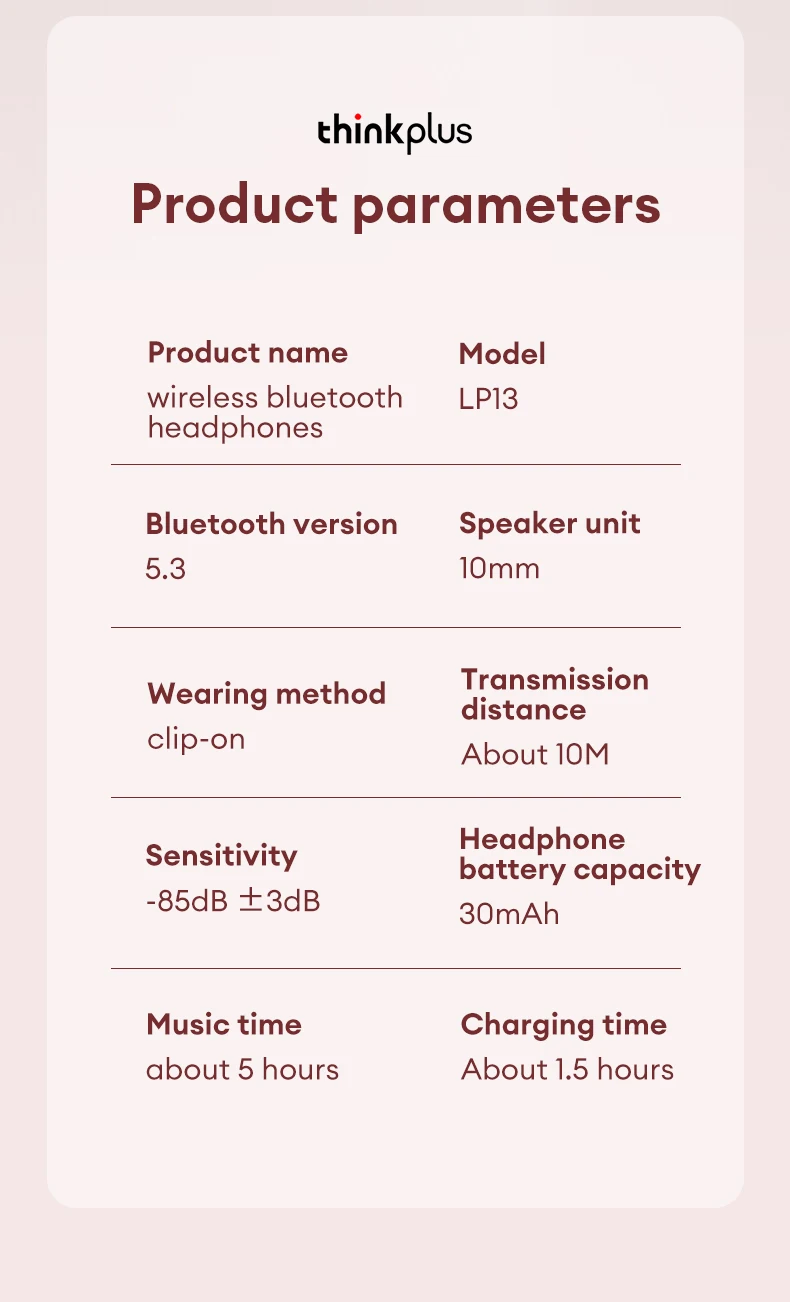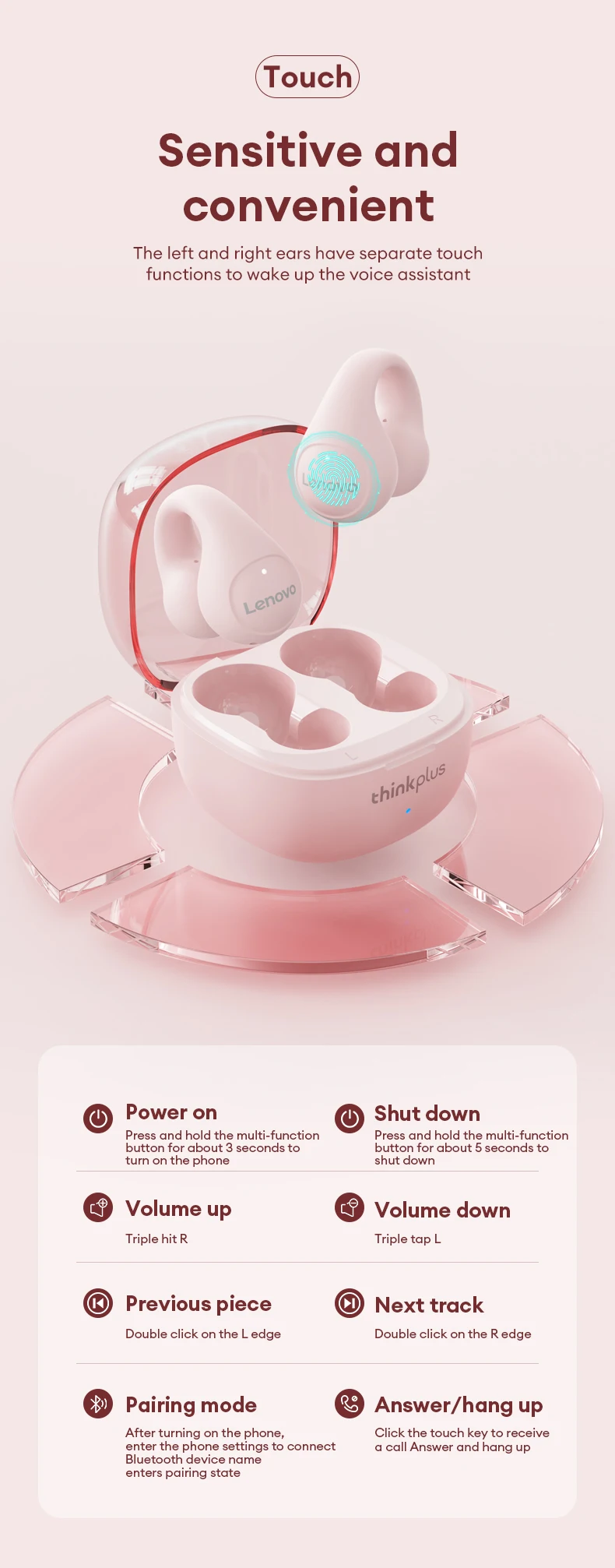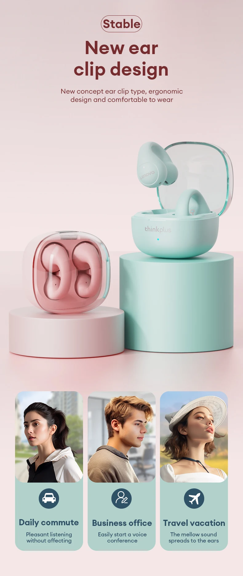 Original Lenovo LP13 TWS Wireless Bluetooth V5.3 Earphones Ear Clip Sports Earbuds HD Microphone Headset