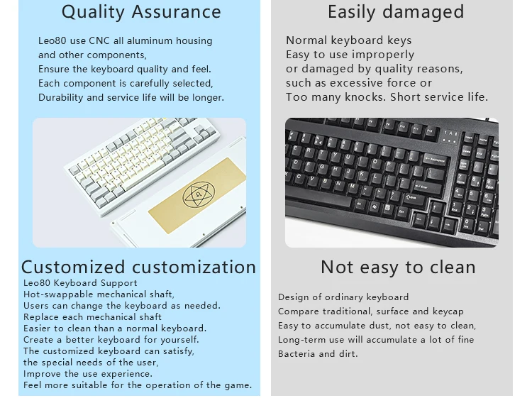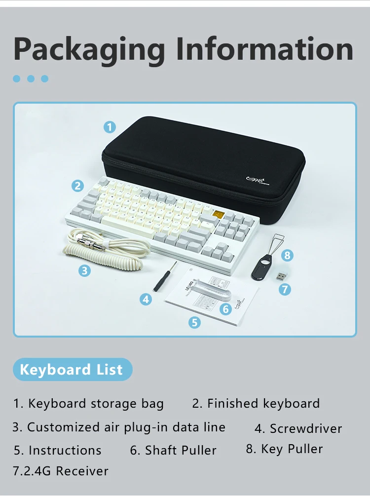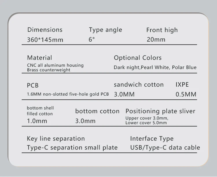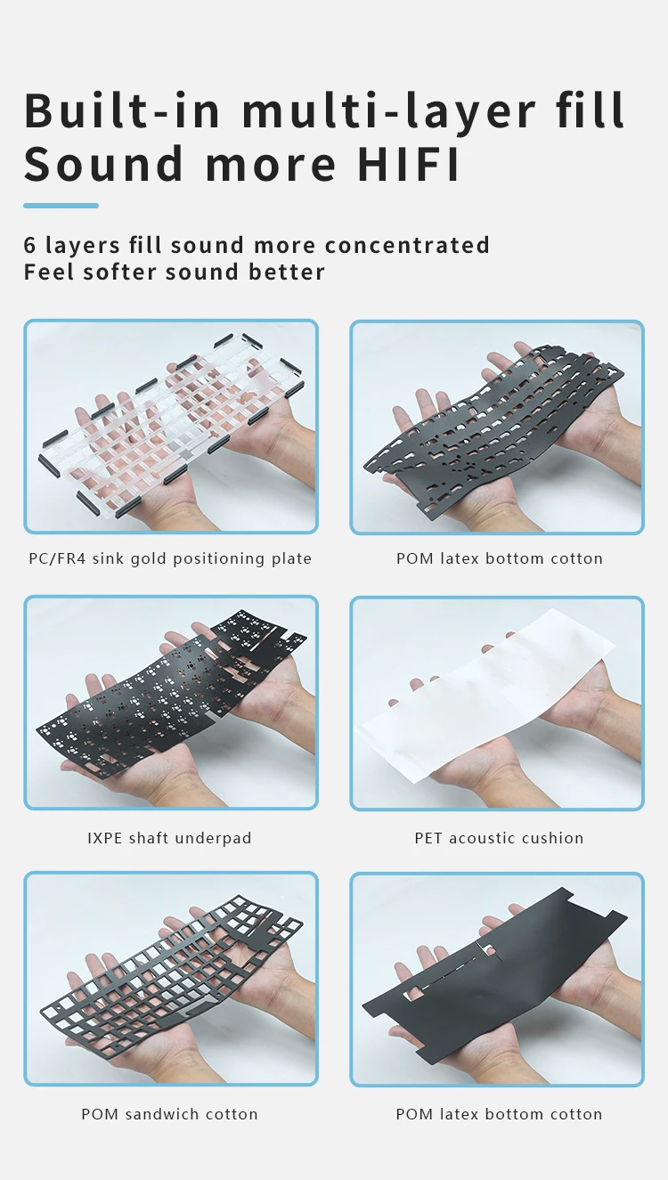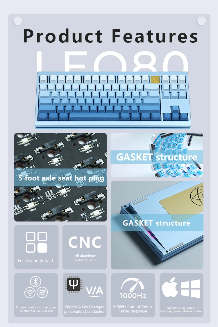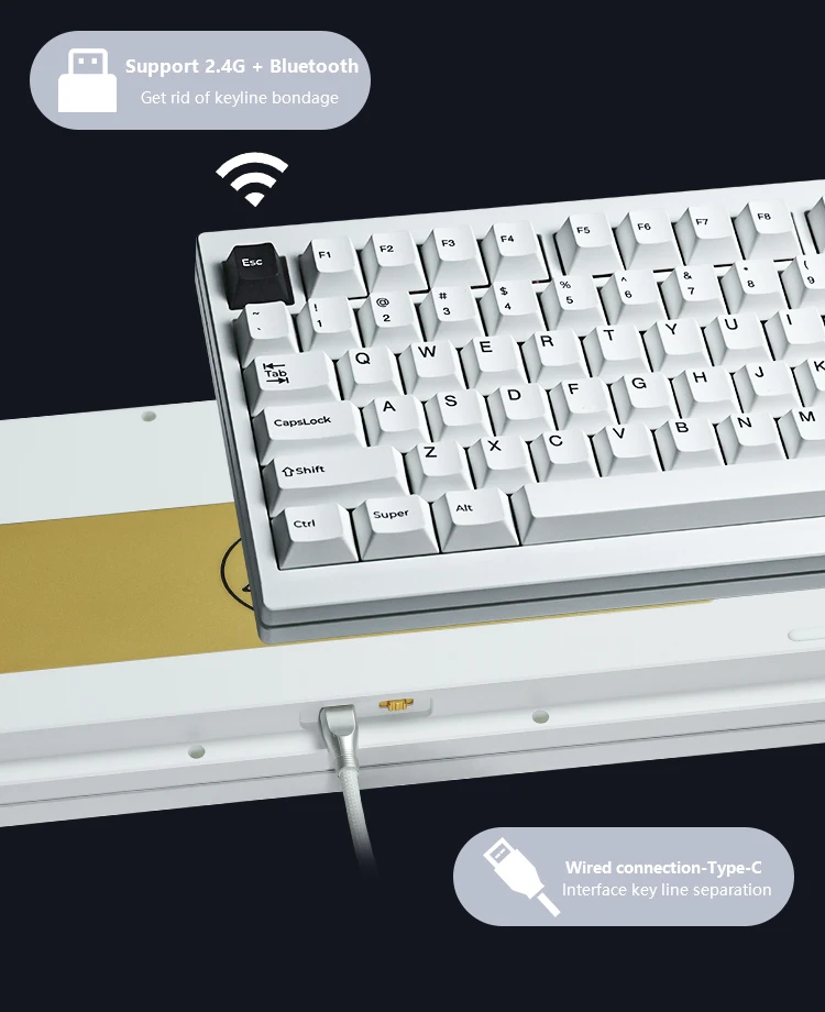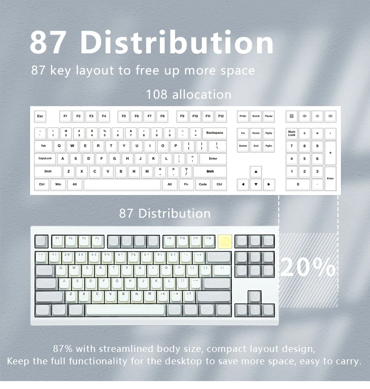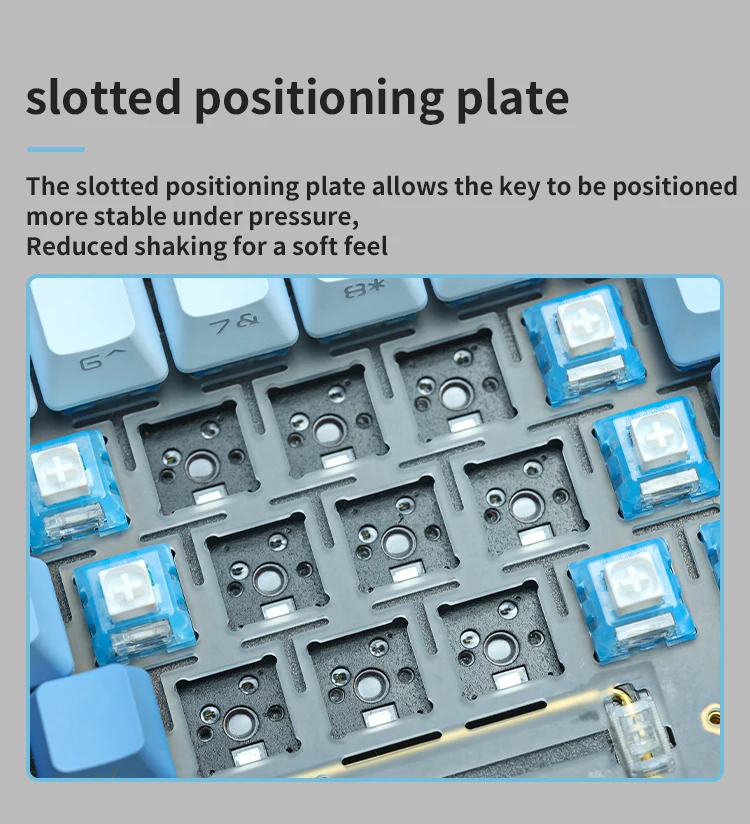 Este kit de teclado 80% / TKL combina a la perfección una estética sofisticada y una funcionalidad excepcional.Su diseño moderno y aerodinámico no solo mejora el atractivo visual sino que también proporciona una comodidad superior durante un uso prolongado.