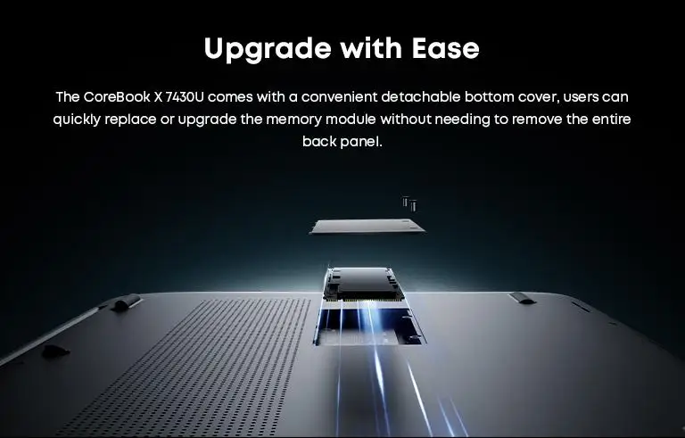 El CoreBook X 7430U viene con una cómoda cubierta inferior desmontable, los usuarios pueden
