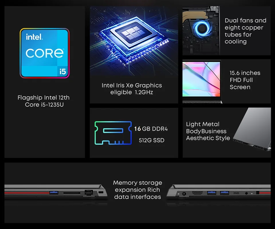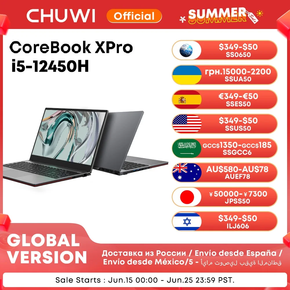 Contenido del paqueteComprar CHUWI CoreBook XPro Laptop Core i5-1235U/12450H 10/8 núcleos portátil para juegos 15,6 "pantalla FHD 16GB RAM 512GB SSD Metal Body Notebook
