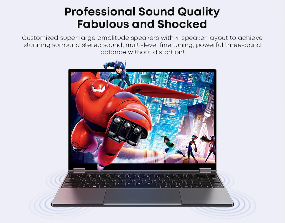 FreeBook utiliza material de aleación de aluminio de grado de aviación #6061, diseño unibody, fuerte y resistente a los impactos; Múltiples procesos están cuidadosamente diseñados para crear un cuerpo ligero y resistente; la capa súper protectora anodizeocasting hace que el cuerpo sea tan suave como el. Textura cálida y buena, que le da una sensación diferente.