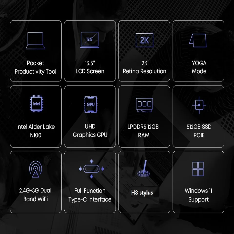 Contenido del paquete1 * computadora portátil1 * cargador/cable tipo C (12V/2A)1 * manual de usuario1 * tarjeta de garantía* El lápiz óptico es un accesorio opcional, se necesita una compra adicional* Paquete 1: computadora portátil* Paquete 2: computadora portátil + bolígrafoComprar CHUWI FreeBook Laptop Tablet PC 13,5 pulgadas FHD pantalla táctil Windows 11 Intel N100/i3-1215U Quad Core 12GB LPDDR5 512G SSD WIFI6
