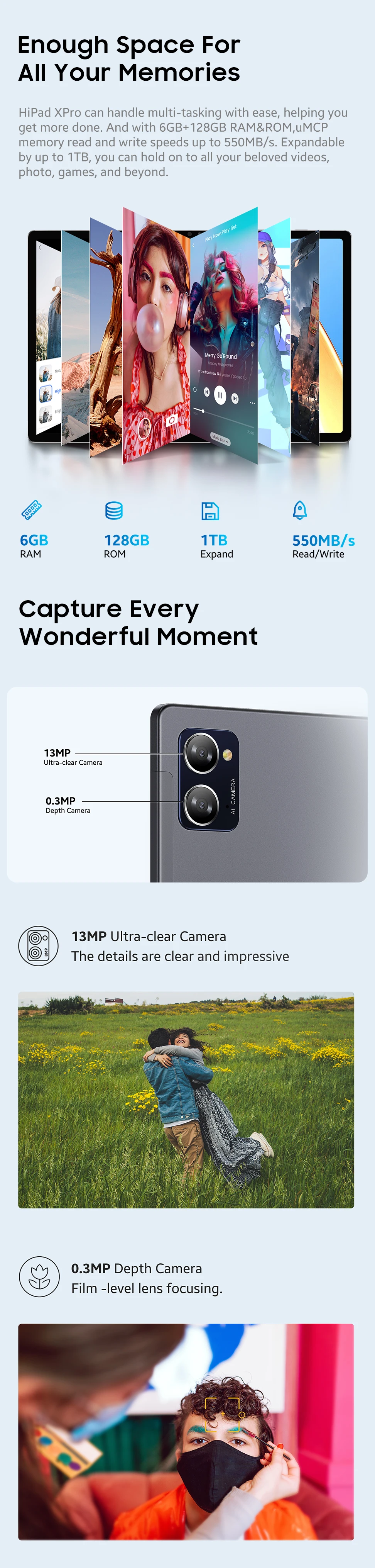 Contenido del paquete1 * tableta1 * cargador/cable tipo C (5V/2A)1 * Manual de usuario1 * tarjeta de garantíaComprar CHUWI HiPad XPro Nueva tableta de 10,51 pulgadas Pantalla 1920*1200 FHD Android 12 Unisoc T616 Octa Core 6GB RAM 128GB ROM 4G LTE Dual SIM 7000mAh Batería 13MP 8MP Cámara